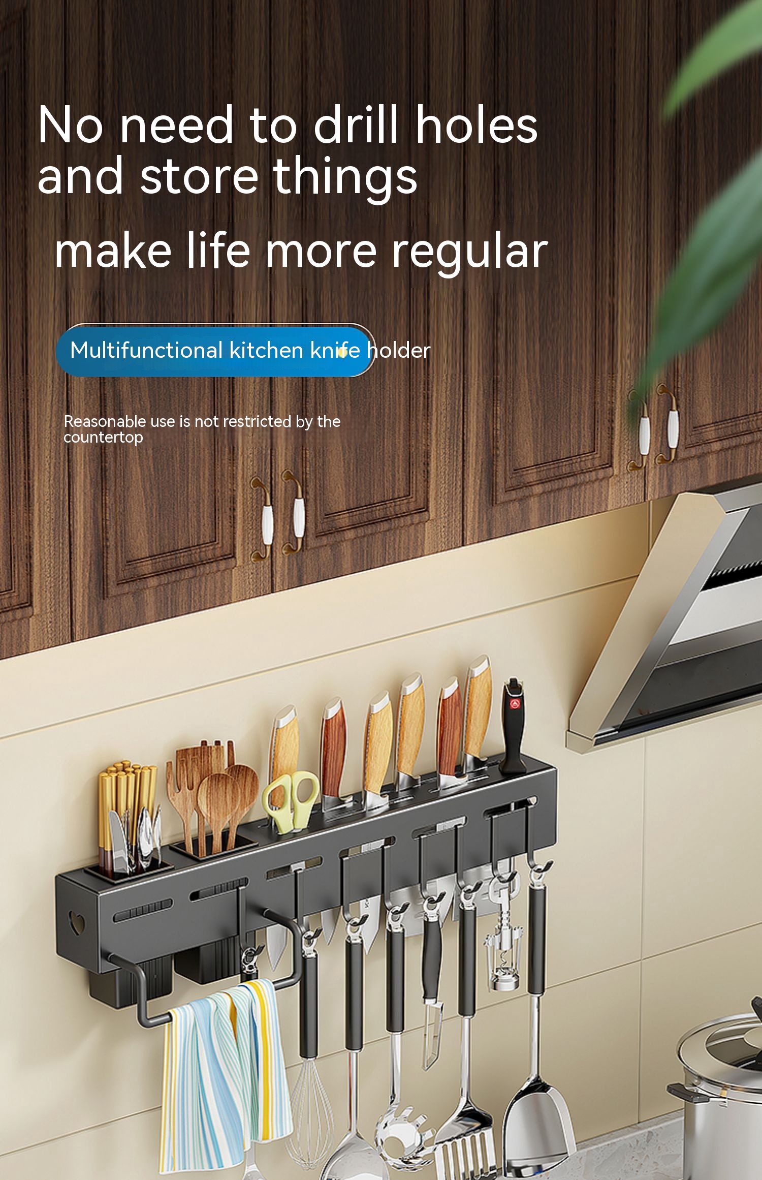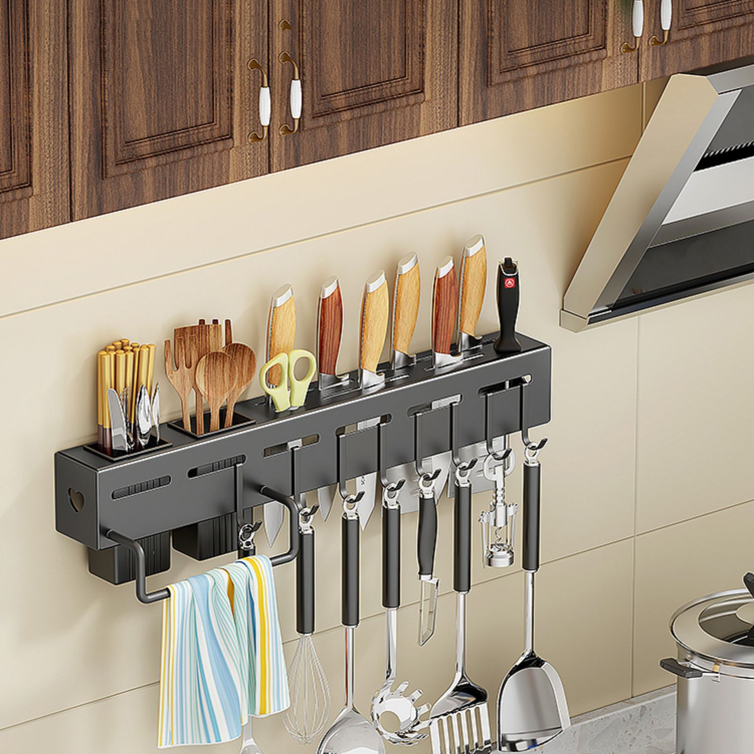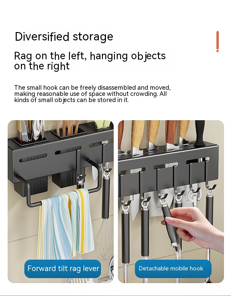 Color classification: {30CM knife holder+single chopstick barrel+4 hooks+thickened} Silver {40CM knife holder+double chopstick barrel+6 hooks+thickened} Silver {50CM knife holder+double chopstick barrel+8 hooks+thickened} Silver {60CM knife holder+double chopstick barrel+8 hooks+thickened} Silver {30CM knife holder+single chopstick barrel+4 hooks+thickened} Black {40CM knife holder+double chopstick barrel+6 hooks+thickened} Black {50CM knife holder+double chopstick barrel+8 hooks+thickened} Black {60CM knife holder+double chopstick barrel+8 hooks+thickened} Barrel+8 hooks+thickened} black {30CM knife holder+8 hooks+cloth rod+extra thick} silver {40CM knife holder+single cylinder+8 hooks+cloth rod+extra thick} Silver {50CM knife holder+double cylinder+8 hooks+cloth rod+extra thick} Silver {60CM knife holder+three cylinders+8 hooks+cloth rod+extra thick} Silver {30CM knife holder+8 hooks+cloth rod+extra thick} Black {40CM knife holder+single cylinder+8 hooks+cloth rod+extra thick} Black {50CM knife holder+double cylinder+8 hooks+cloth rod+extra thick} Black {60CM knife holder+three cylinders+8 hooks+cloth rod+extra thick} Black {22.22 5CM knife holder+double barrel+4 hooks+cloth rod+extra thick} silver color {22.5CM knife holder+double barrel+4 hooks+cloth rod+extra thick} black