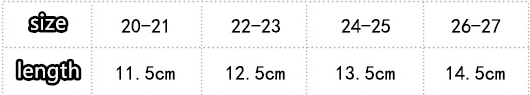Children's socks size: 20-21 yards (internal length 11.5cm), 22-23 yards (internal length 12.5cm, 24-25 yards (internal length 13.5cm, 26-27 yards (internal length 14.5cm)