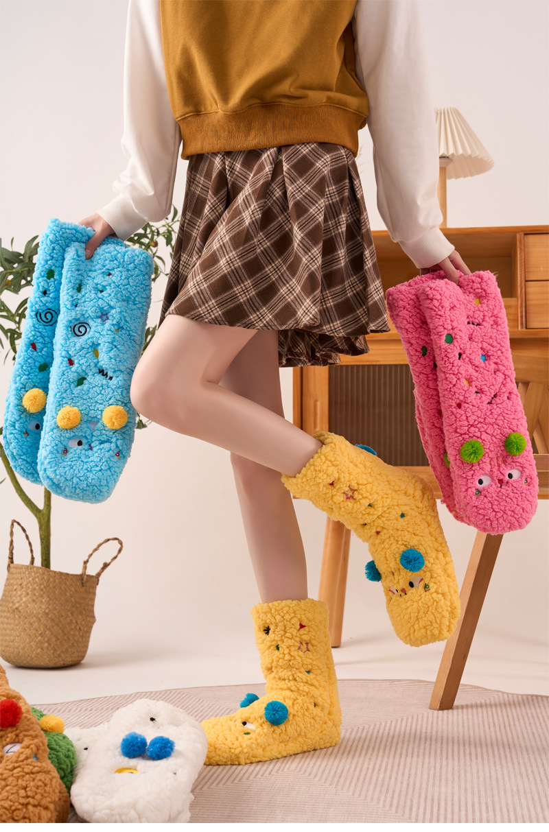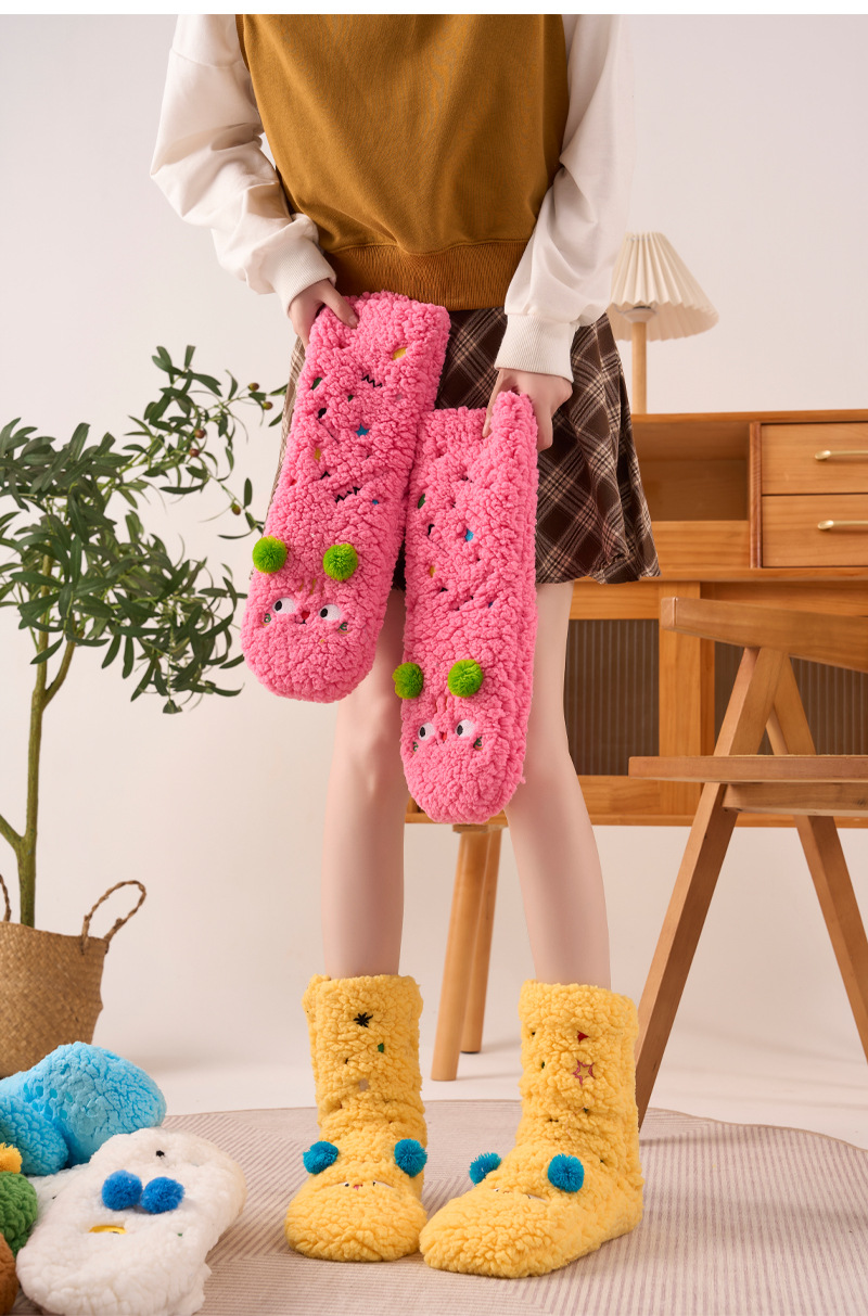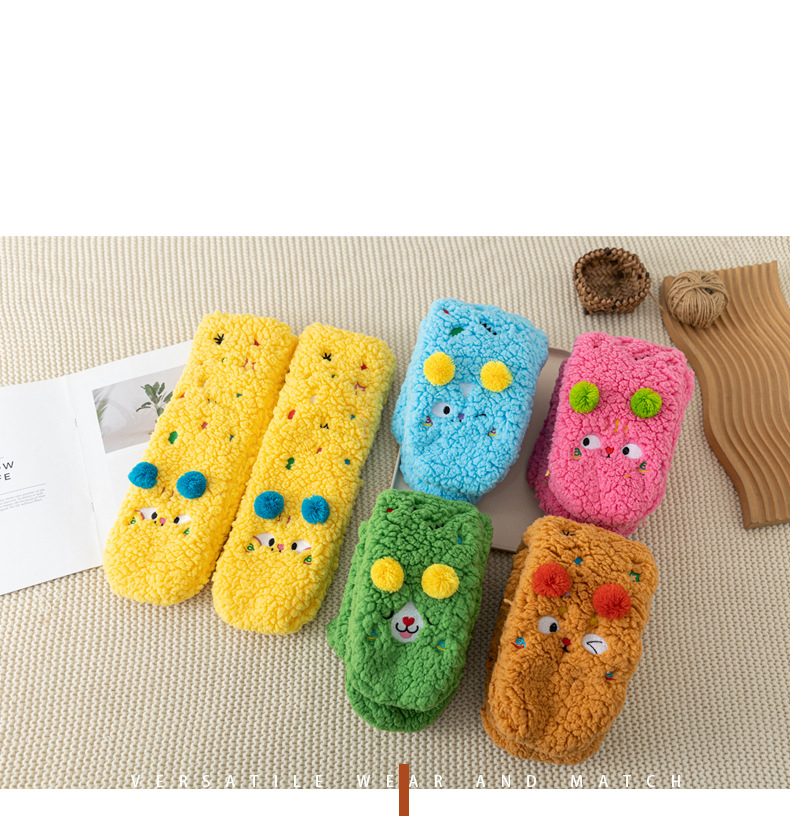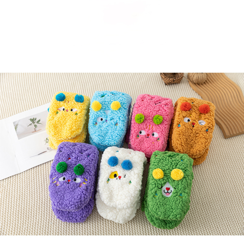 Non Slip Socks Autumu Winter Warm Home Sleeping Soft Fuzzy Floor Sock With Grips Thickened Middle Tube Child Slipper Socks