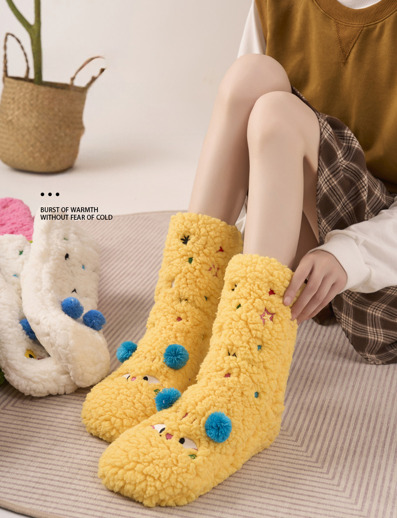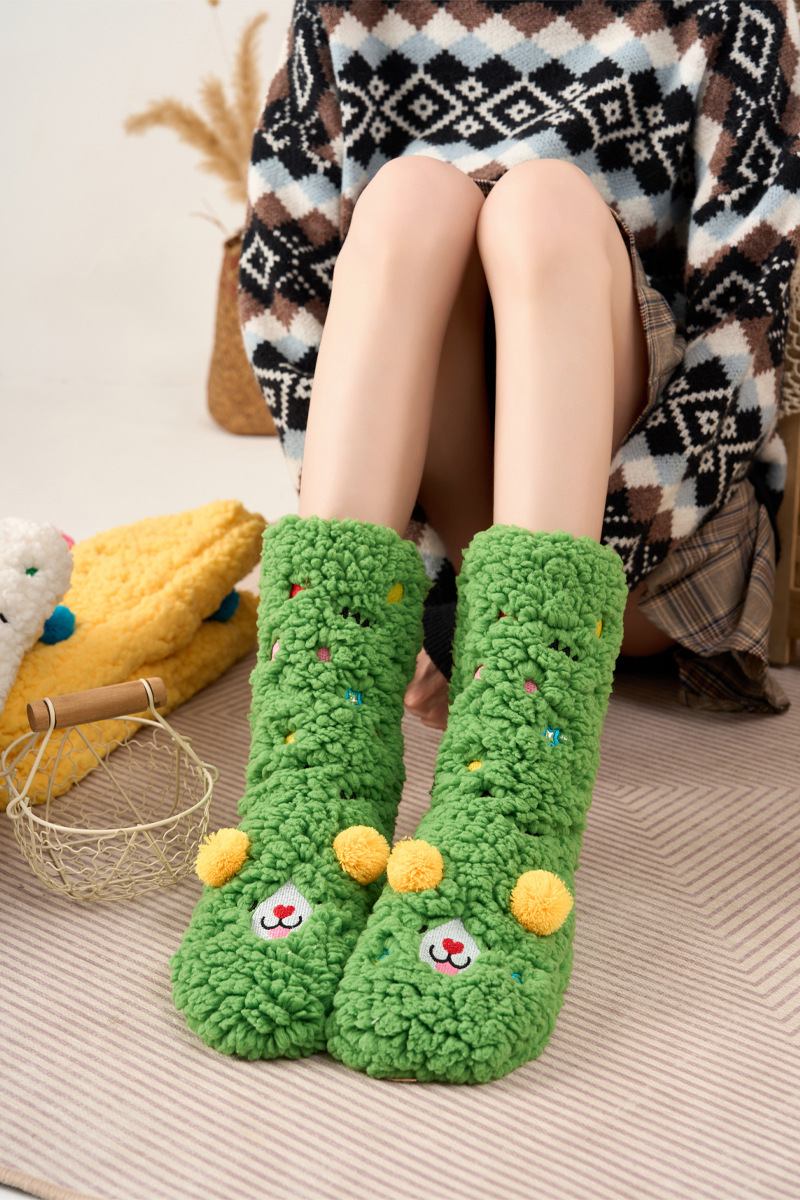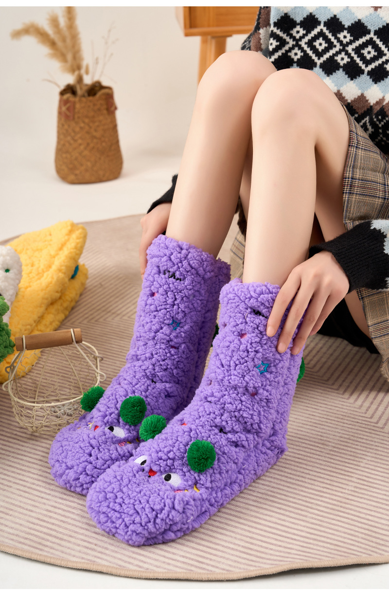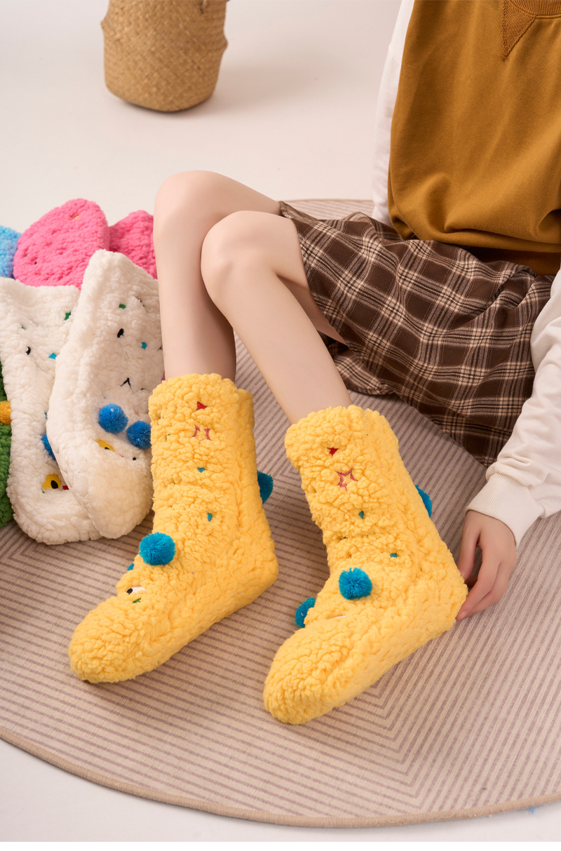 Non Slip Socks Autumu Winter Warm Home Sleeping Soft Fuzzy Floor Sock With Grips Thickened Middle Tube Child Slipper Socks