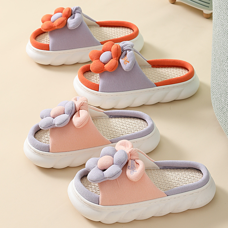 Non-slip Thick Bottom Cotton Stepping On Shit-feeling Linen Slippers