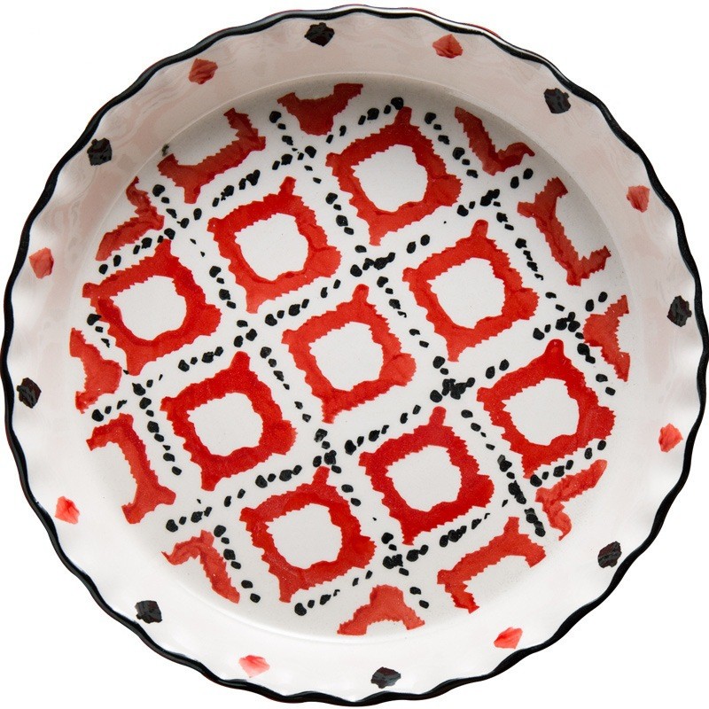 Colors: Pineapple pie plate, Red isolation pie plate, Red Mr. Pie plate