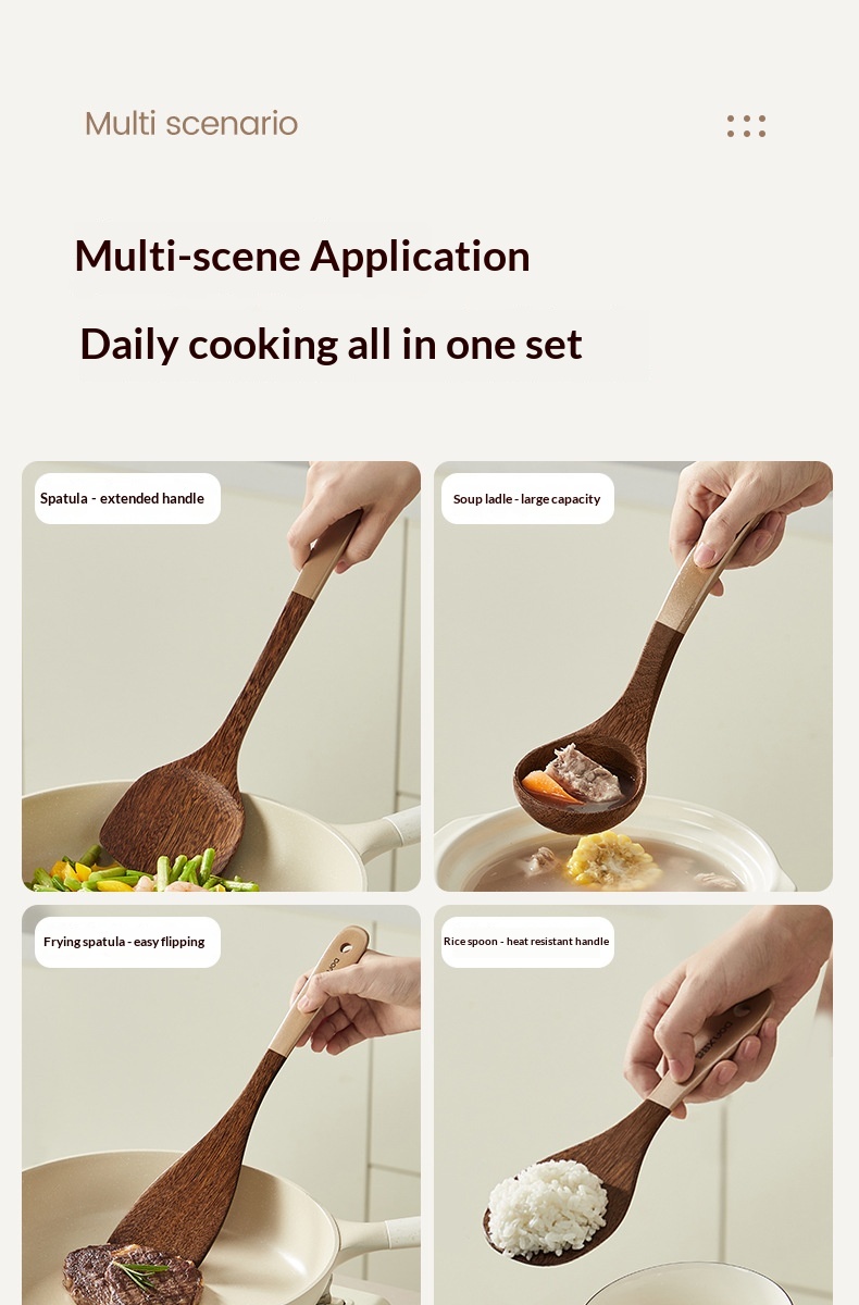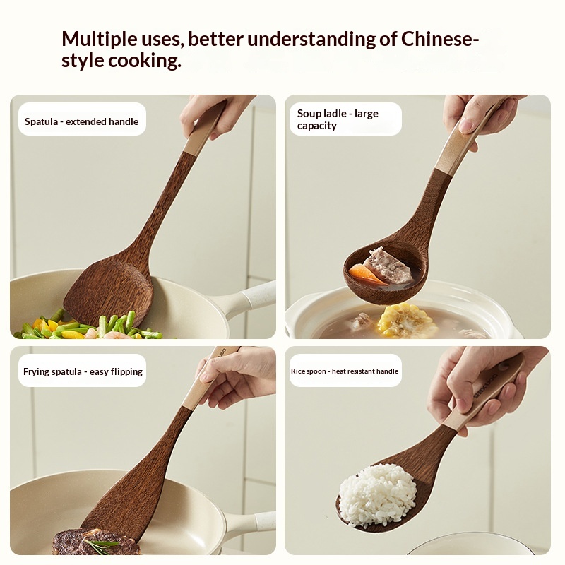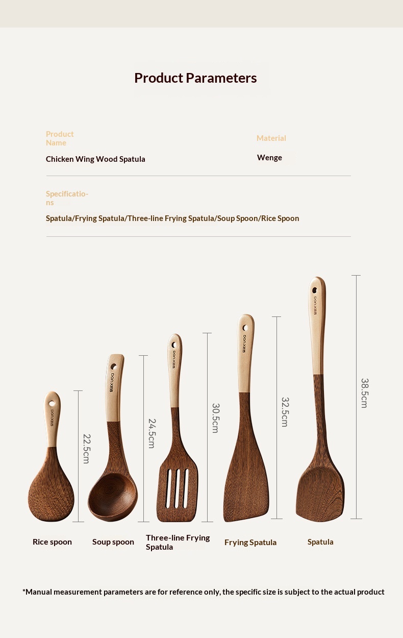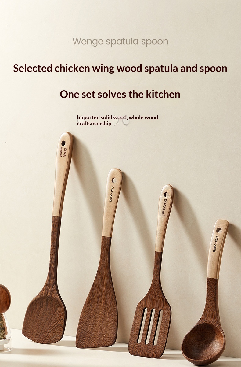 Specifications: Wenge wood spatula, wenge wood stir-fry spoon, wenge wood soup spoon, wenge wood rice spoon