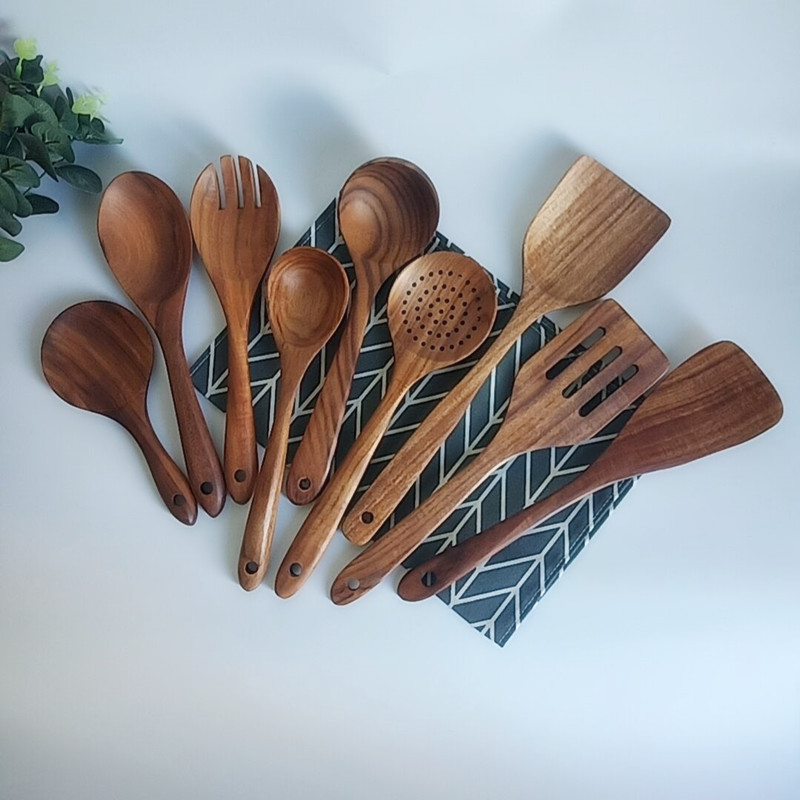 Size: Wooden shovel 36cm*9cm, wooden shovel 33.5cm*8cm, curved shovel 31.5cm*7.3cm, square shovel 30.5cm*7.5cm, slot shovel 30.5cm*7.5cm, rice scoop 18cm*7.8cm, large soup spoon 27cm *7.5cm, small soup spoon 26cm*6.3cm, large seasoning spoon 28.5cm*8cm, slotted spoon 28.5cm*8cm, small seasoning spoon 24cm*7cm, salad spoon 26cm*6.8cm, salad fork 26cm*6.8cm