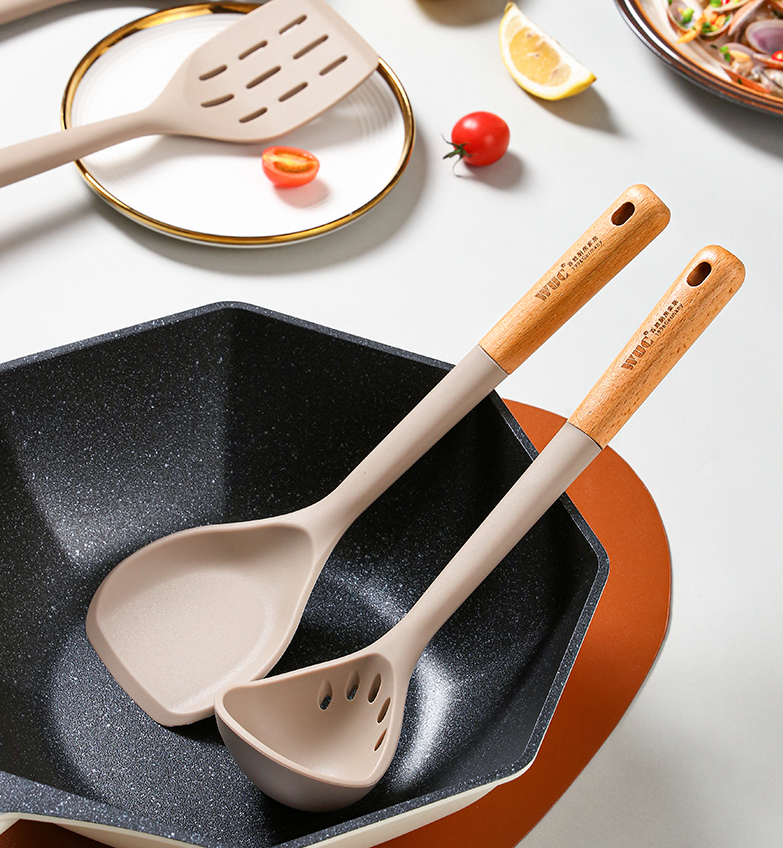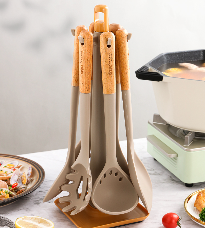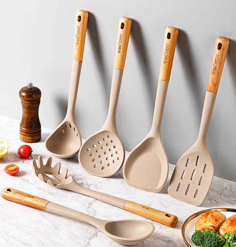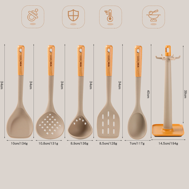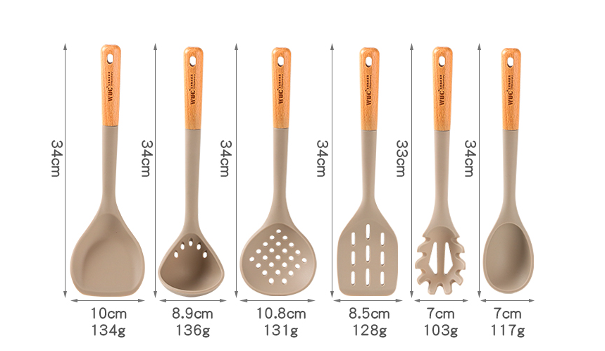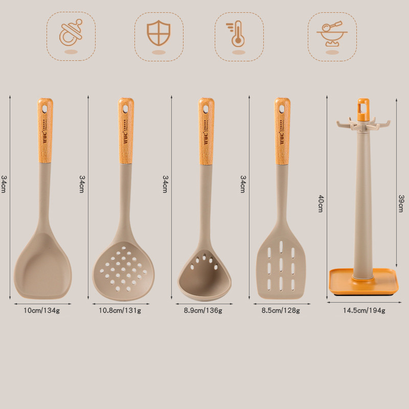 Color classification: 5-piece combination (vegetable shovel + soup spoon + colander + frying shovel + bracket) 6-piece combination (vegetable shovel + soup spoon + colander + frying shovel + rice spoon + bracket) 7-piece combination (vegetable shovel + soup spoon + colander + frying spatula + noodle grill + rice spoon + bracket)