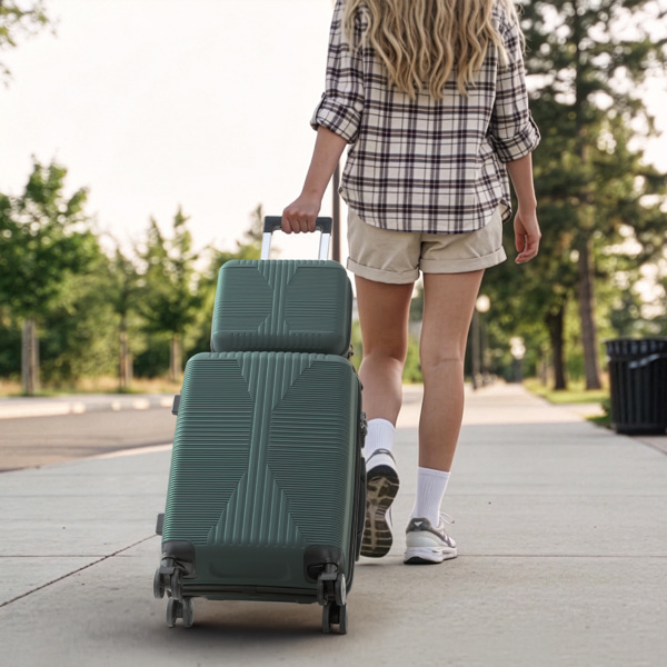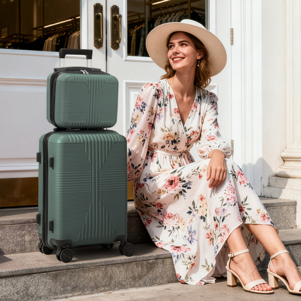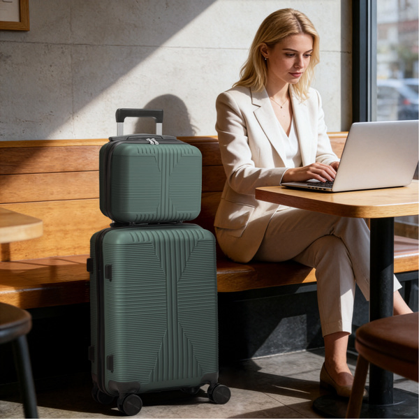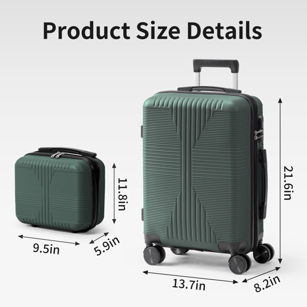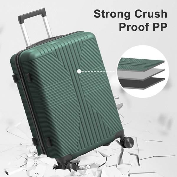 Non-TSA Customs Lock 2-in-1 PP Trolley Case, 12in/20in, PP Dark Green