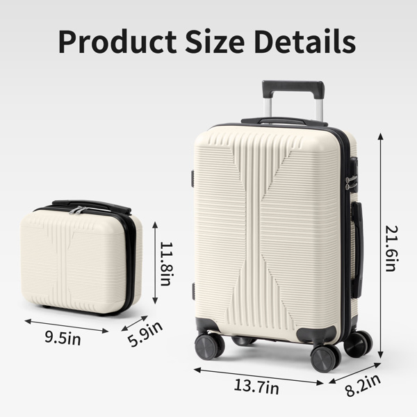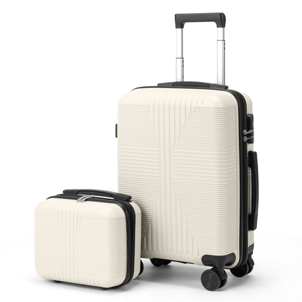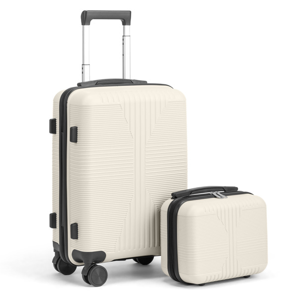 Non-TSA Customs Lock 2-in-1 PP Trolley Case, 12in/20in, PP Off-white
