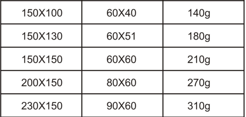 Size: 150X100cm, 150X130cm, 150X150cm, 200X150cm, 230X150cm