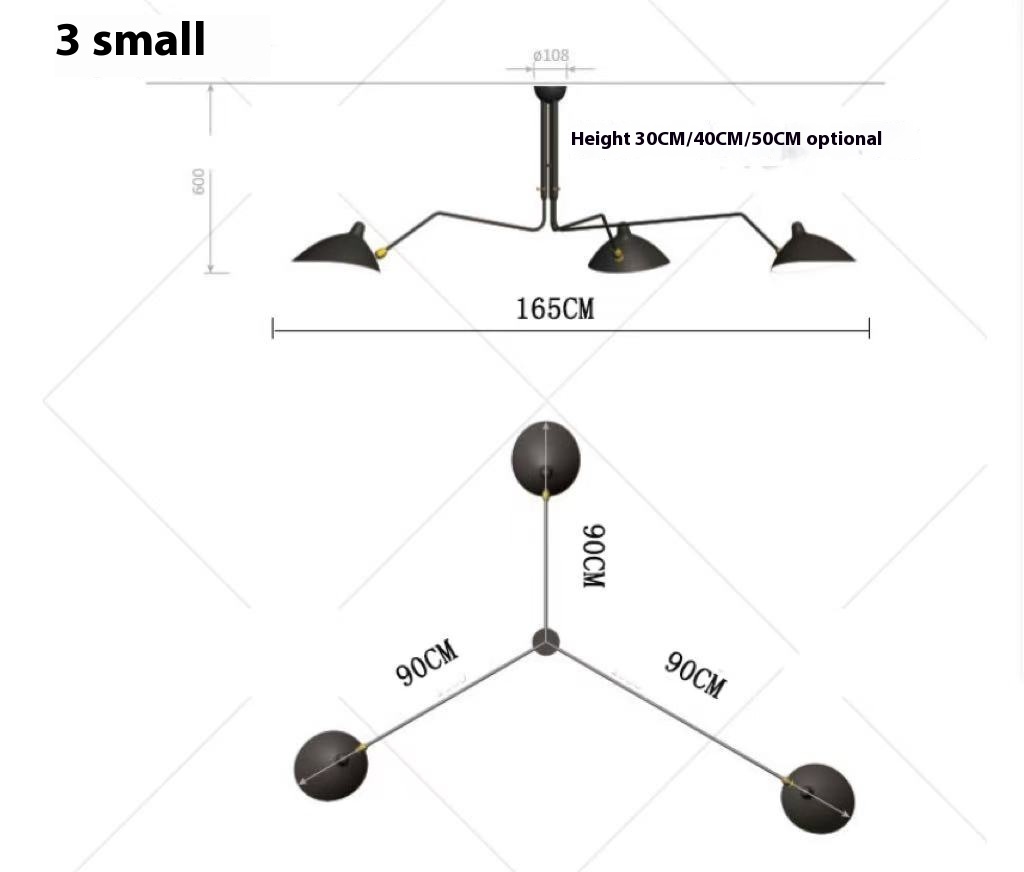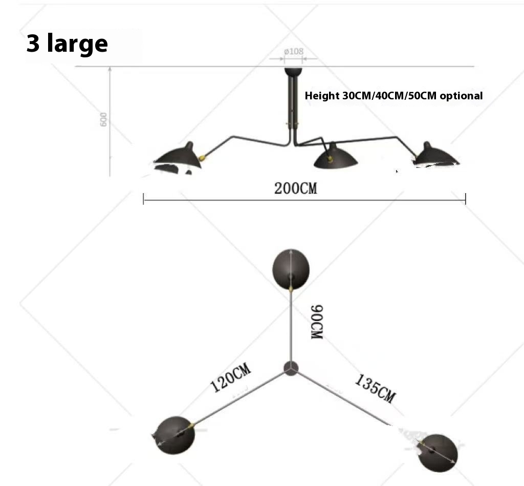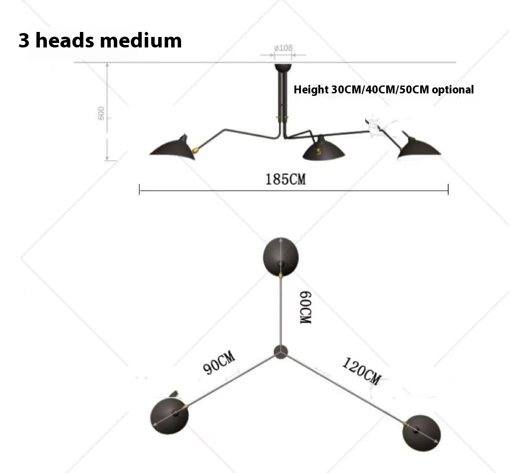 Light color: 3 heads small size 165CM,3 heads medium 185CM,3 heads large 200CM,6 heads small size 200CM,6 heads medium 235CM,6 heads large 280CM