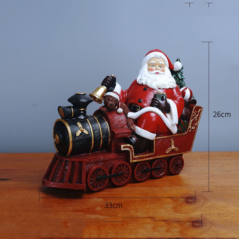 Color: RRW101-D drives a train, RRW104-C rides a motorcycle, RRW104-F drives a train, RRW105-B Christmas train medium, RRW105-C Christmas train trumpet, Santa Claus sees the list, RRW101-G rides a wooden horse, and RRW111 rides a wooden deer.
