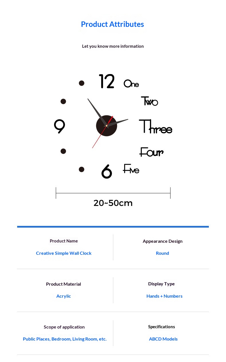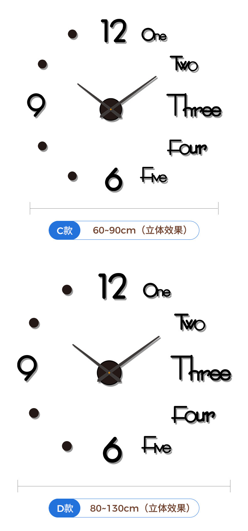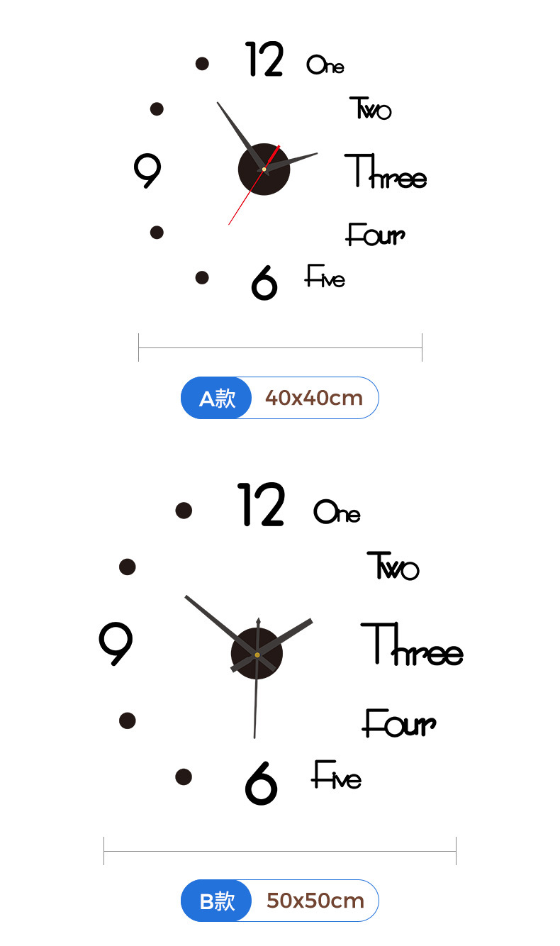 Dimensions: Black with second hand, 40cm; Red with second hand, 40cm; Gold with second hand, 40cm; Silver with second hand, 40cm; Luminous color with second hand, 40cm; Black with second hand, 50cm; Red with second hand, 50cm; Gold with second hand, 50cm; Silver with second hand, 50cm; Luminous color with second hand, 50cm; Black 3D without second hand (60–90cm); Red 3D without second hand (60–90cm); Gold 3D without second hand (60–90cm); Silver 3D without second hand (60–90cm); Luminous color 3D without second hand (60–90cm); Black 3D without second hand (80–130cm); Red 3D without second hand (80–130cm); Gold 3D without second hand (80–130cm); Silver 3D without second hand (80–130cm); Luminous color 3D without second hand (80–130cm)