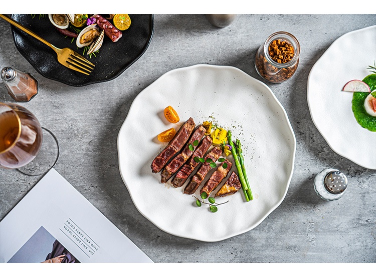 Color: 8-inch lace shallow plate-frosted white, 8-inch lace shallow plate-Frosted Black, 10-inch lace shallow plate-frosted white, 10-inch lace shallow plate Frosted Black
