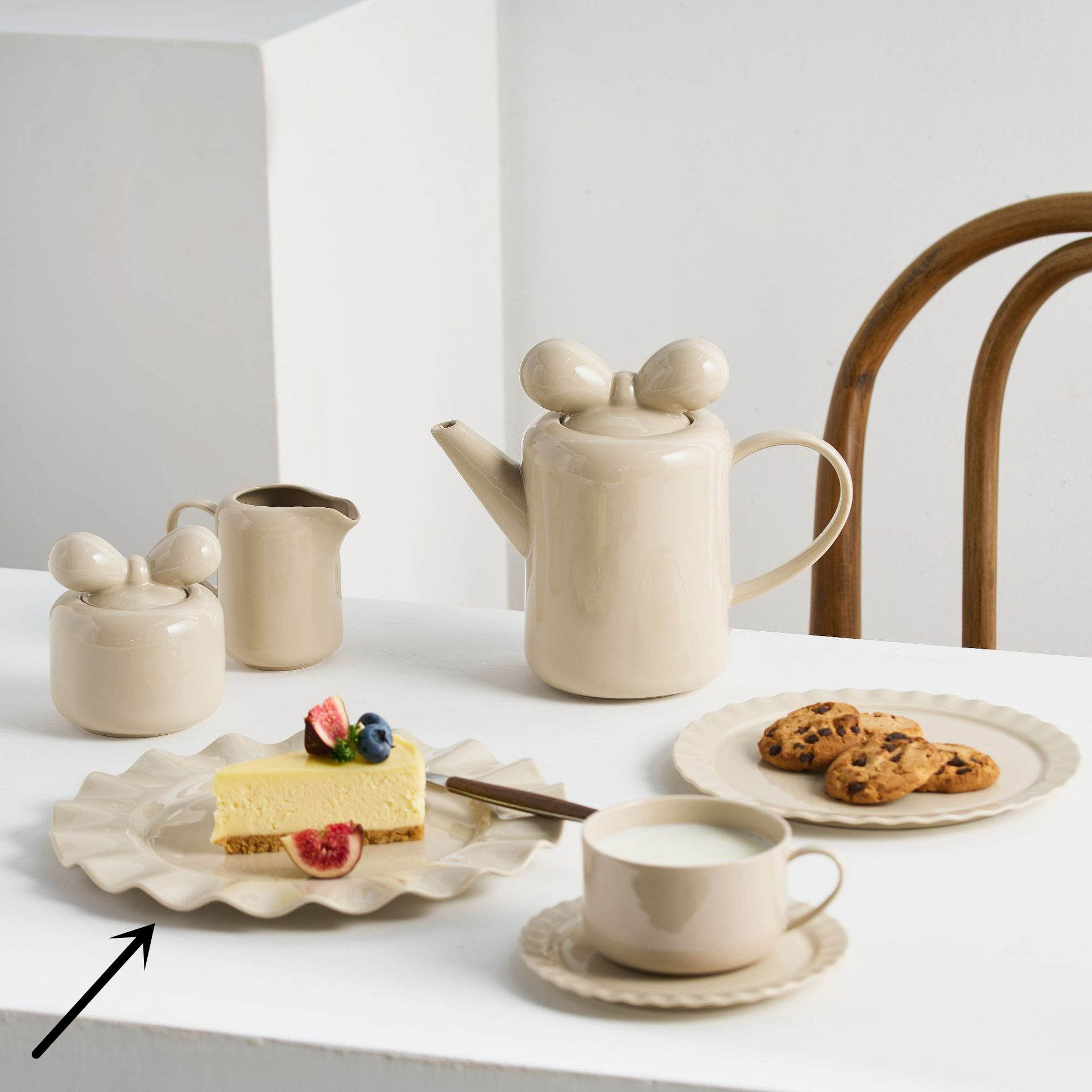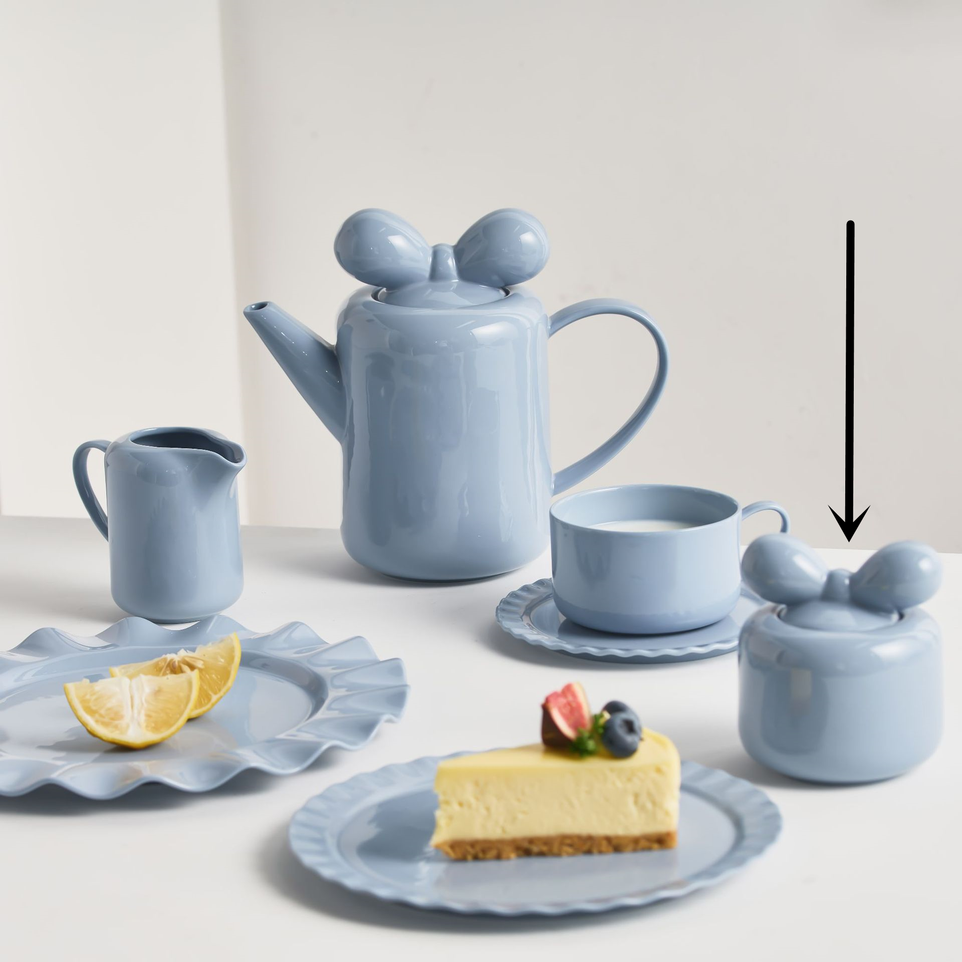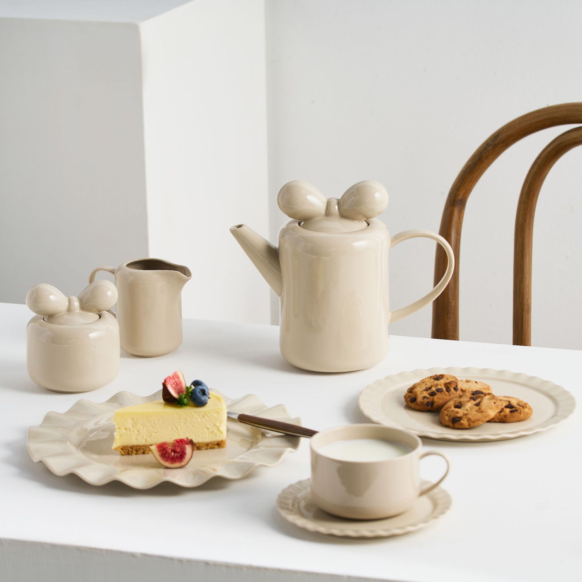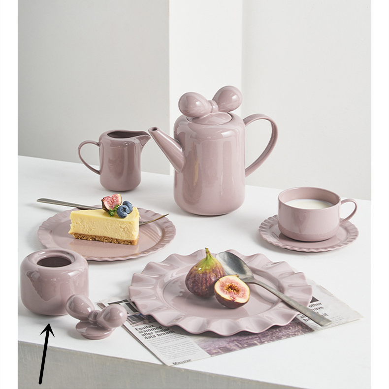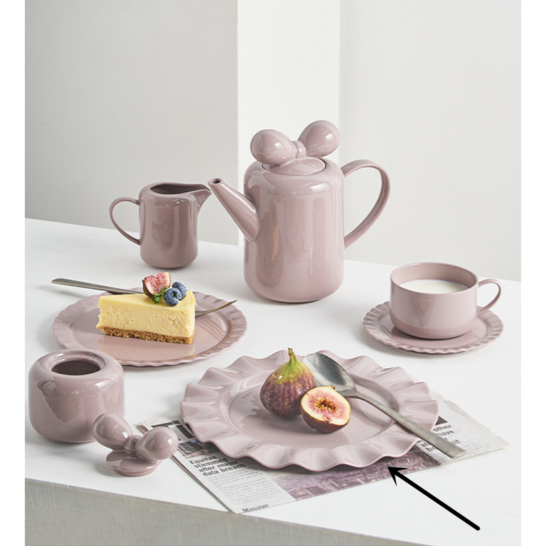 Specifications: teapot, coffee cup and saucer, milk pot, sugar bowl, 19cm wave dessert plate, 23cm wave dessert plate