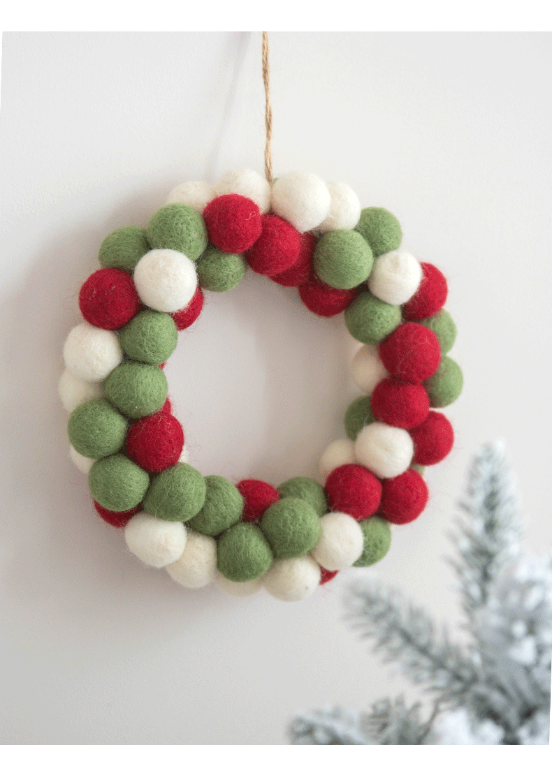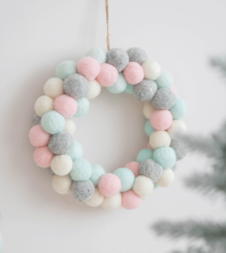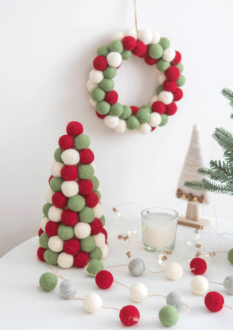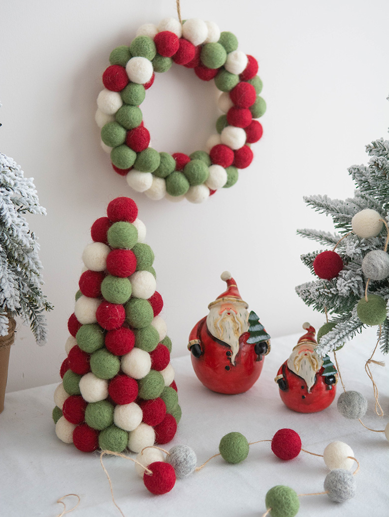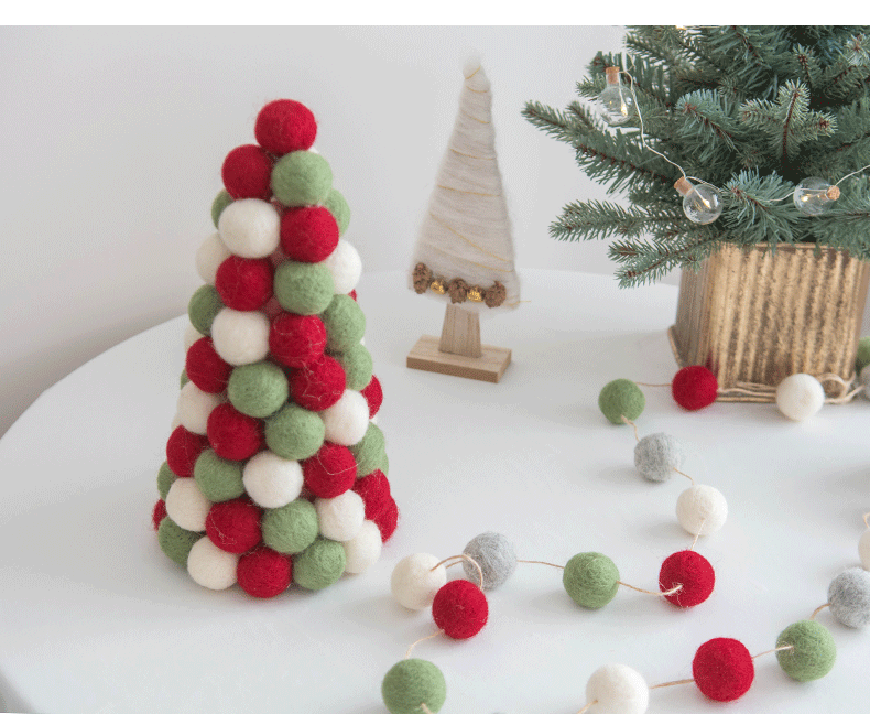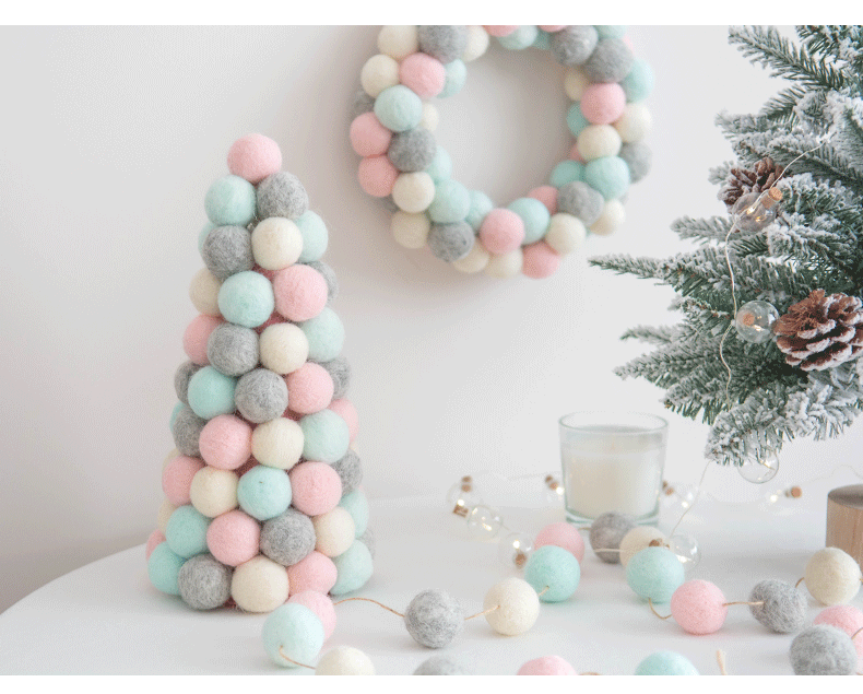 Color classification: pink and blue trees, pink and blue garlands, pink and blue ball strings, red and green trees, red and green garlands, red and green ball strings