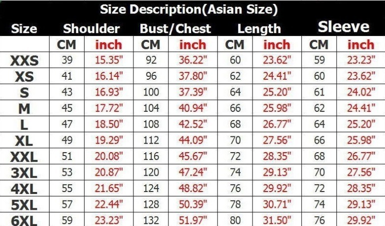 Size: XXS,XS,S,M,L,XL,XXL, XXL,XXXXL