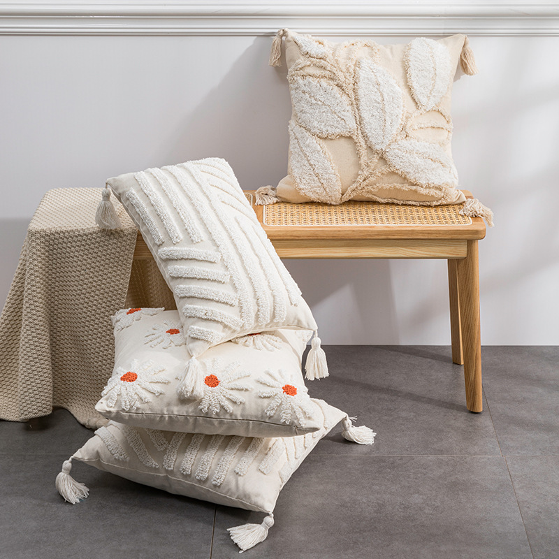 Color: Wanjin Beige, Wanjin Beige Waist Pillow, Loop Fleece/Mubai, Loop Fleece/Mubai Waist Pillow, Tufted Leaves Beige, Sri Lanka Grid