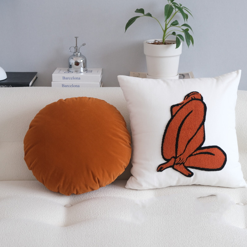 Color Classification: Dark Orange Orange, Dark Orange 87 Geometric Embroidery, Orange Cross-legged Girl Embroidery, White Woven Lantern Tassel Circle, Dark Orange Velvet Round Pillow, Dark Orange Newta, Beige Velvet Flange, Off White Velvet Round Pillow