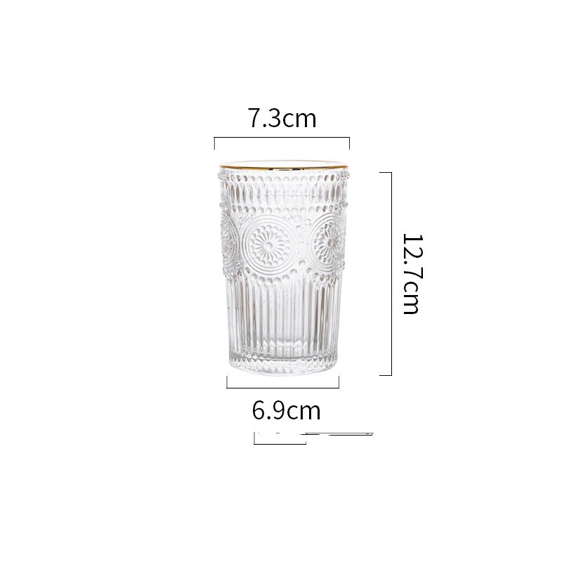 A: Sunflower low glass, B: Sunflower high glass, C: Sunflower wine glass, D: Phnom Penh sunflower low glass, D: Phnom Penh sunflower high glass,