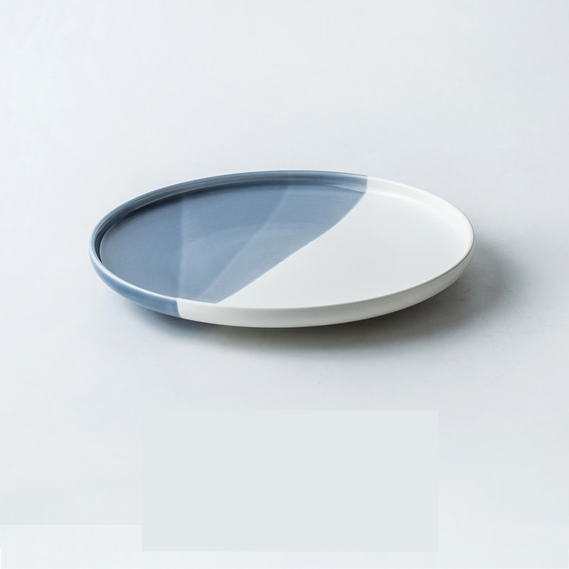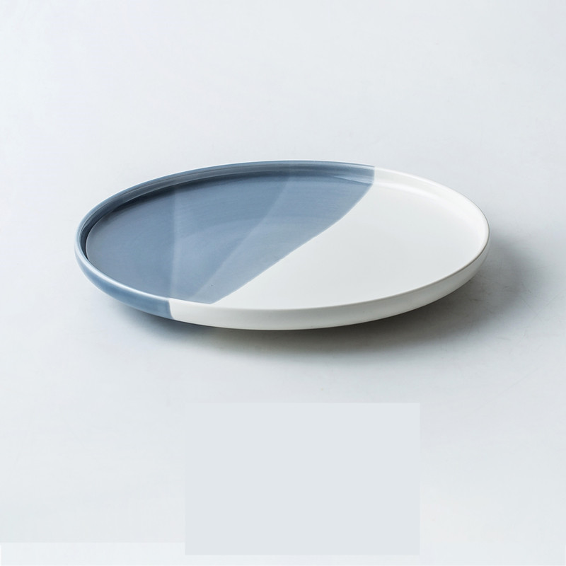 Color: A Parker blue 10.4-inch flat plate, B kiln becomes blue 10.4-inch flat plate, C light black 10.4 inch flat plate, D bright white 10.4 inch flat plate, E Parker blue 8-inch flat plate, F kiln becomes blue 8-inch flat plate, G matt black 8-inch flat plate, H gloss white 8-inch flat plate,, J bright white 6-inch bone plate, K kiln turns blue 6-inch bone plate, L Parker Blue 6-inch bone plate, M Parker blue 9-inch flat plate, N kiln turned blue 9-inch flat plate, O matt black 9-inch flat plate, P bright white 9-inch flat plate