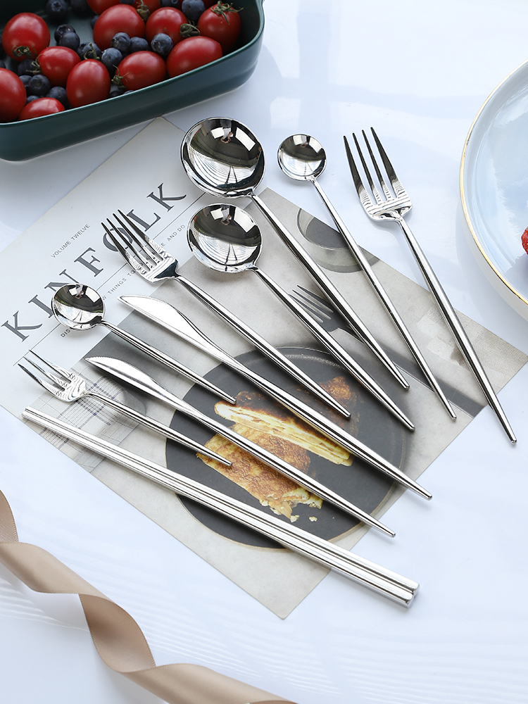 Color classification:Knife, Fork and Spoon Chopsticks (4-piece Set) - Mirror Primary color,Knife and fork Spoon Brown spoon (four-piece set) - Mirror primary color,Knife, Fork and Spoon (three-piece set) - Mirror primary color,Knife and Fork (two-piece set) - Mirror primary color,Spork (Two-piece set) - Mirror Primary color,Spoon chopsticks (two-piece set) - Mirror primary color
