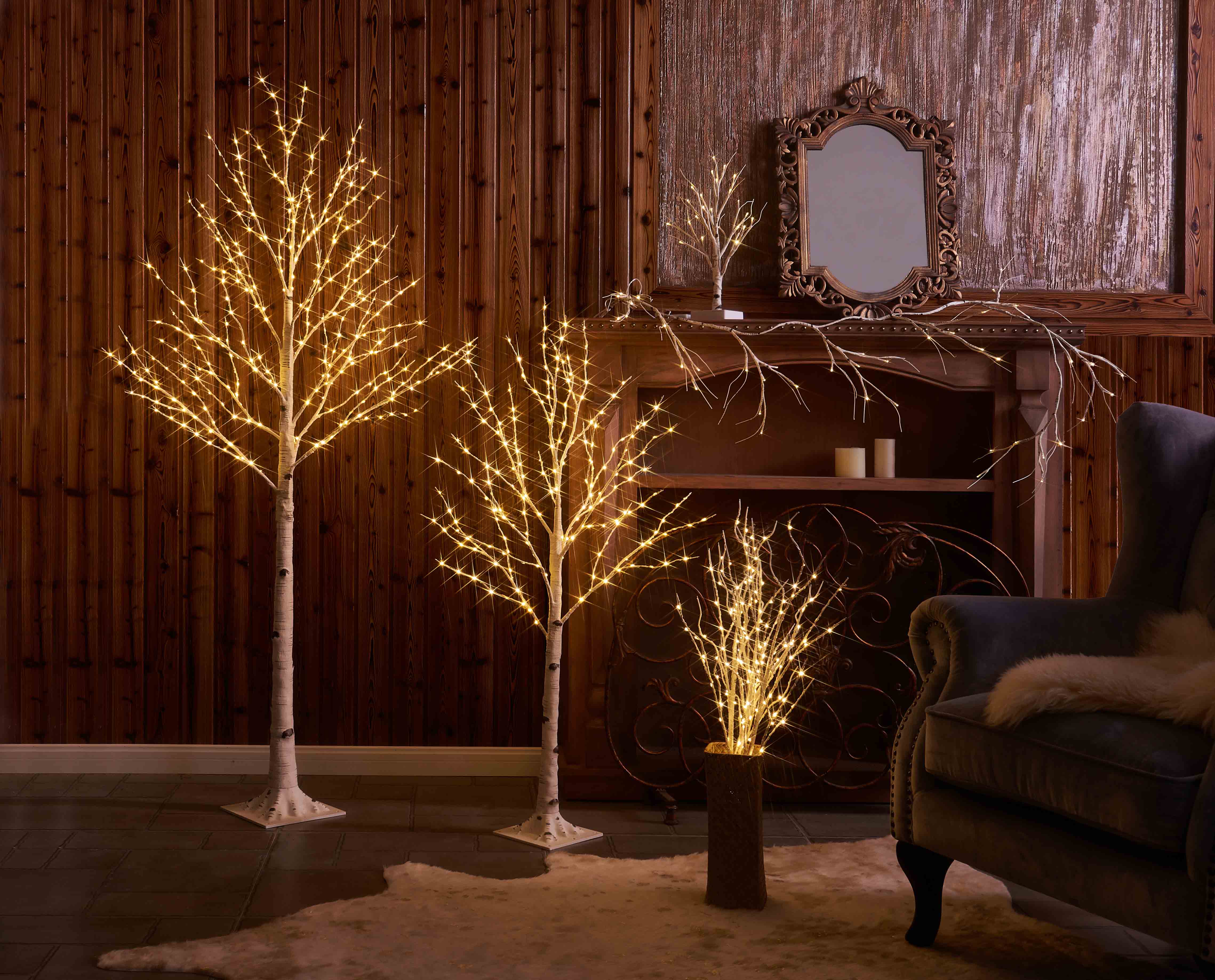 The 200LT Illuminated Birch Tree features 200 vibrant LED lights, casting an enchanting glow-perfect for enhancing any indoor or outdoor space.