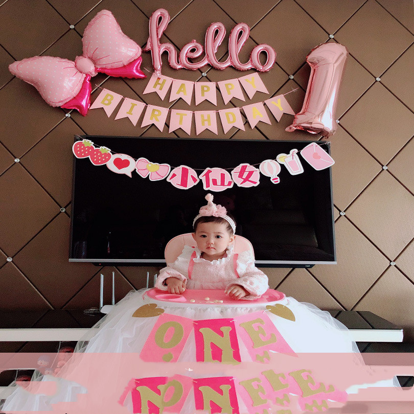 1. One pink birthday flag