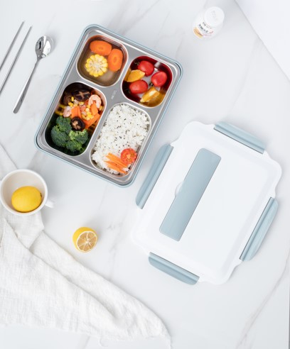 Nordic style lunch box 304 stainless steel multi lattice lunch box student portable lunch box microwave oven heating lunch box