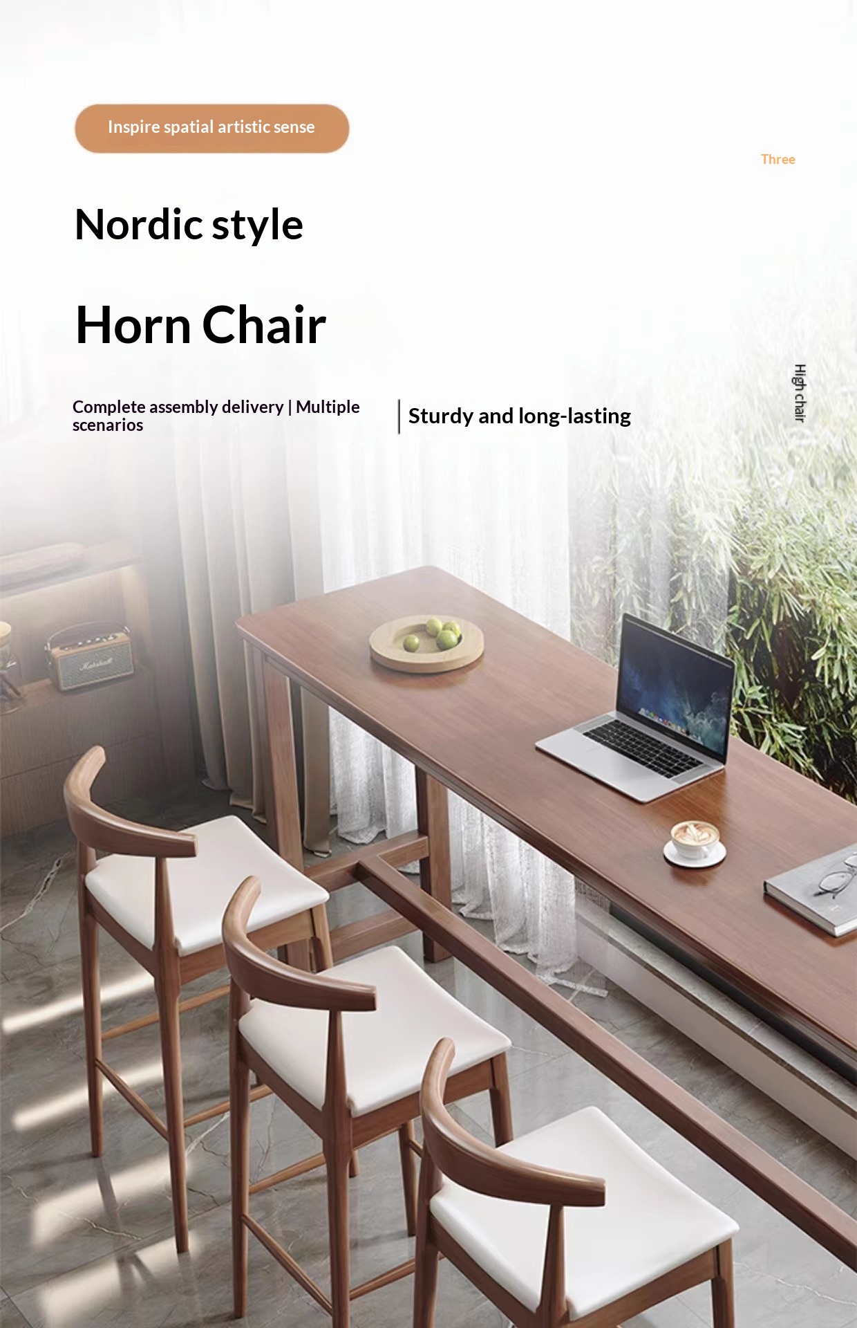 Nordic-style Minimalist Solid Wood Stool Home Cow-horn Chair
