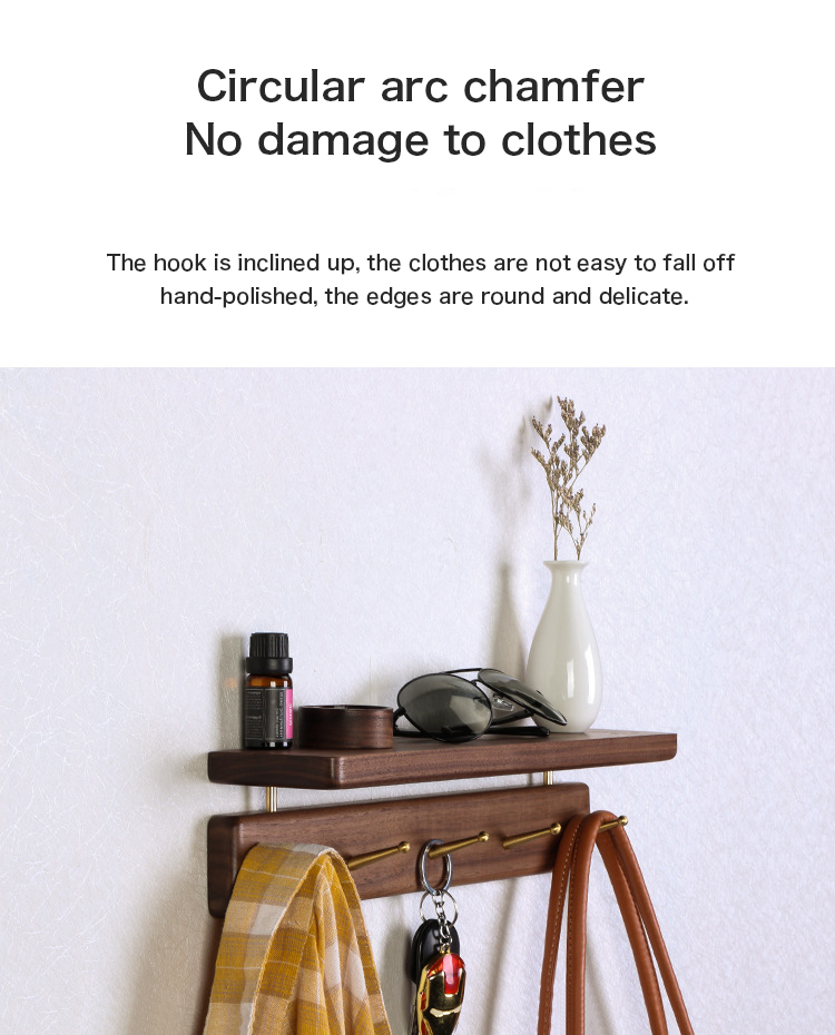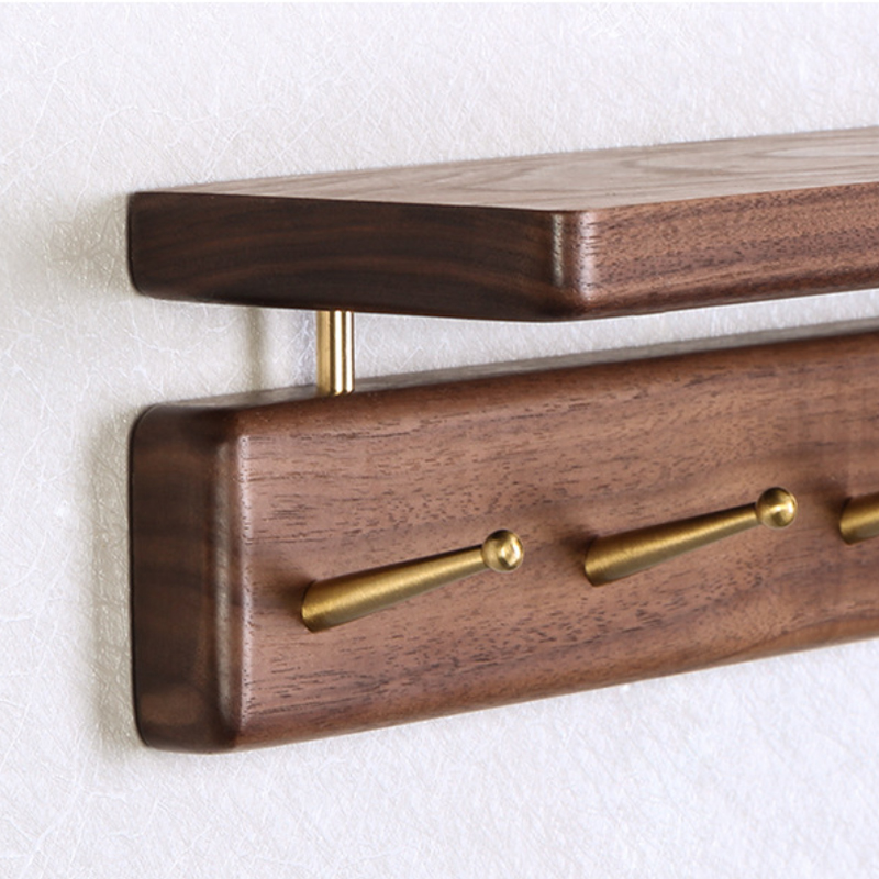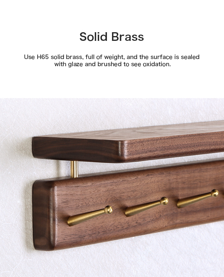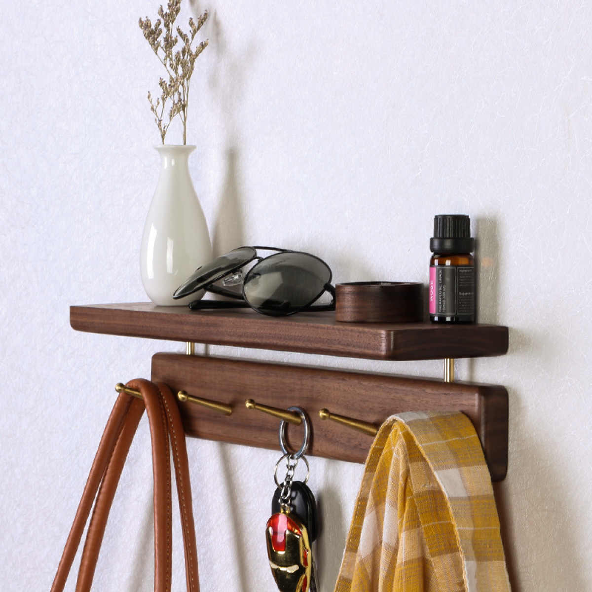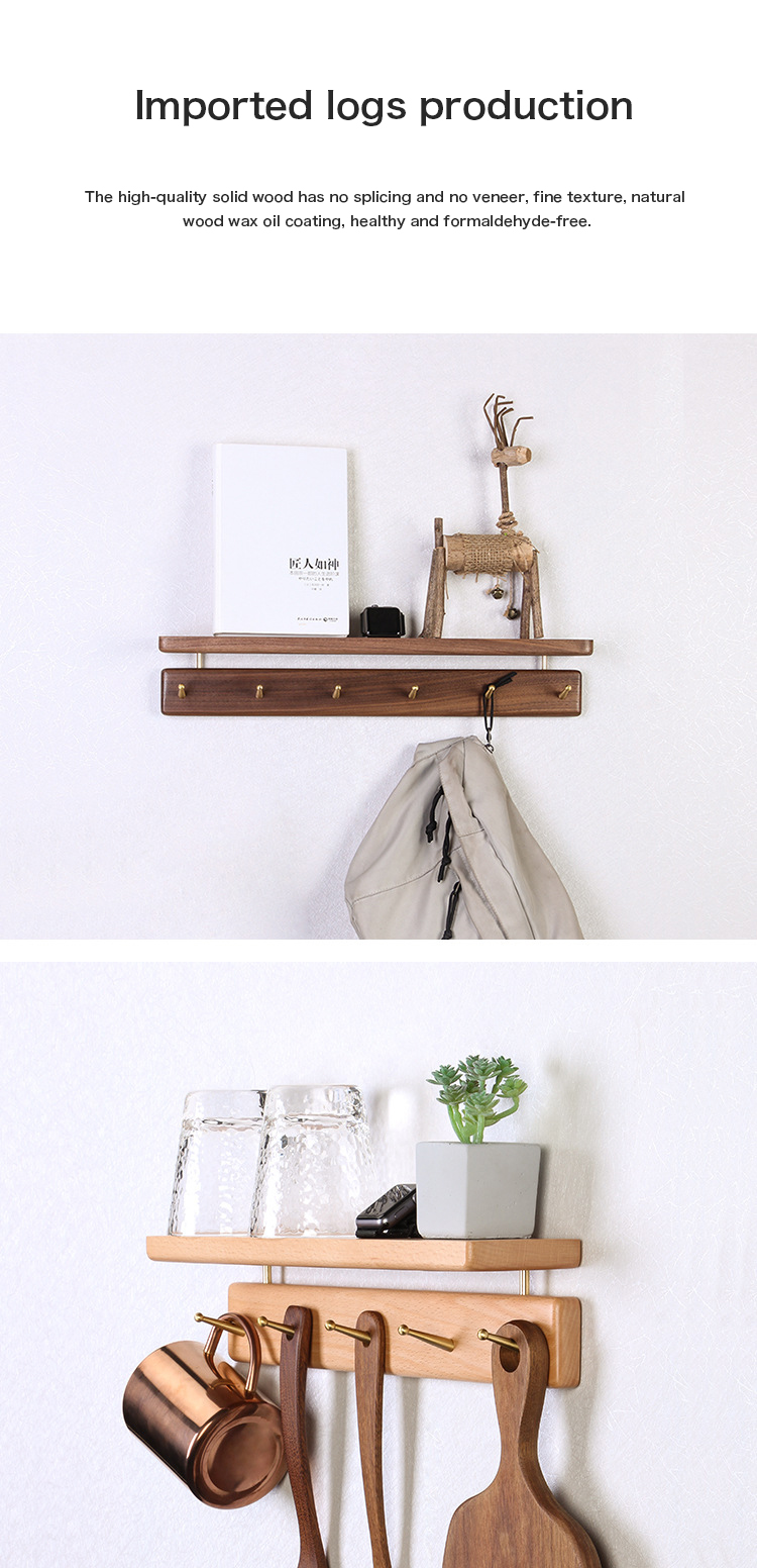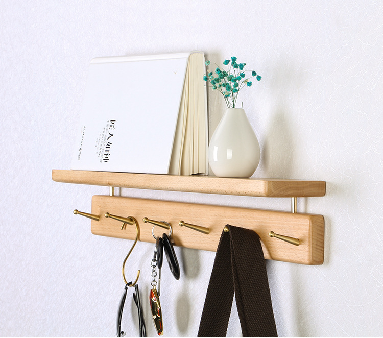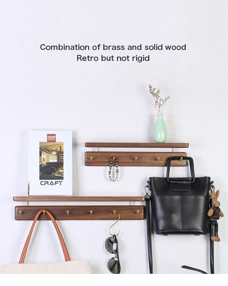 Hanger Nordic Solid Wood Entrance Brass Hook Porch Bedroom Wall Shelf Furniture Decoration Coat Hook Storage Organizer Utensils