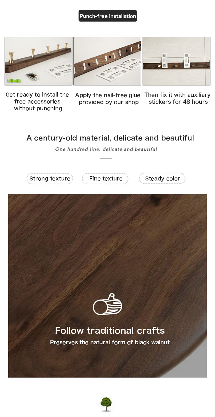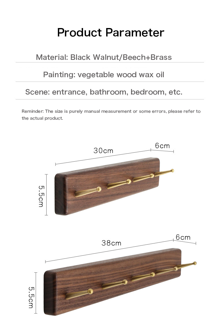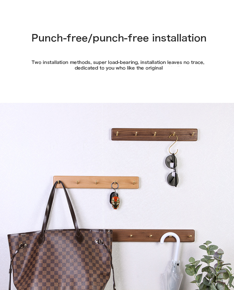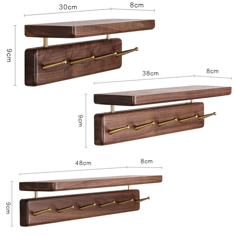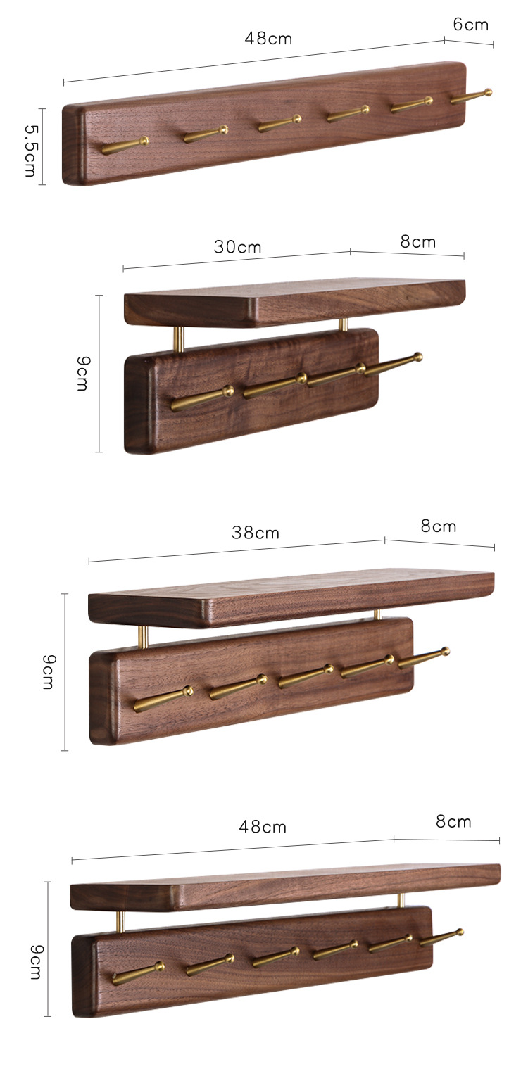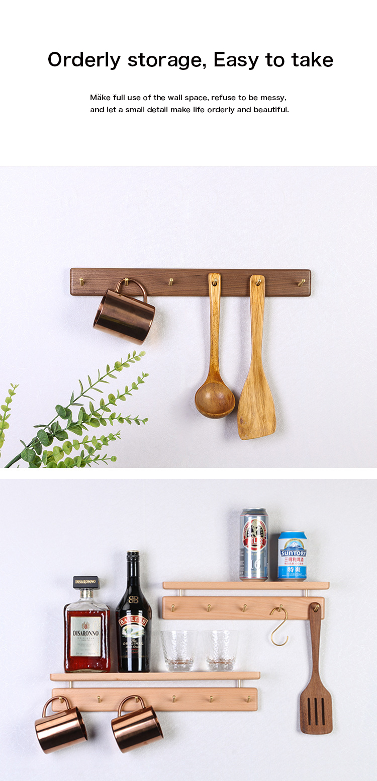 Hanger Nordic Solid Wood Entrance Brass Hook Porch Bedroom Wall Shelf Furniture Decoration Coat Hook Storage Organizer Utensils