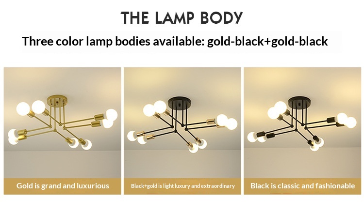 Light color options: 4-light gold, 4-light natural copper, 6-light all black, 6-light black and gold, 6-light all gold, 6-light natural copper, 8-light all black, 8-light black and gold, 8-light all gold