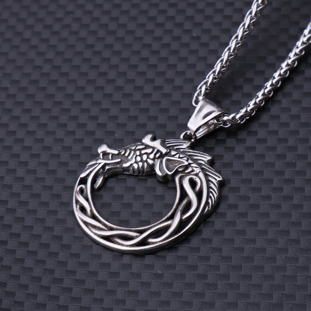Nordic Viking Stainless Steel Pendant Ornament Vintage Dragon Titanium Steel Necklace