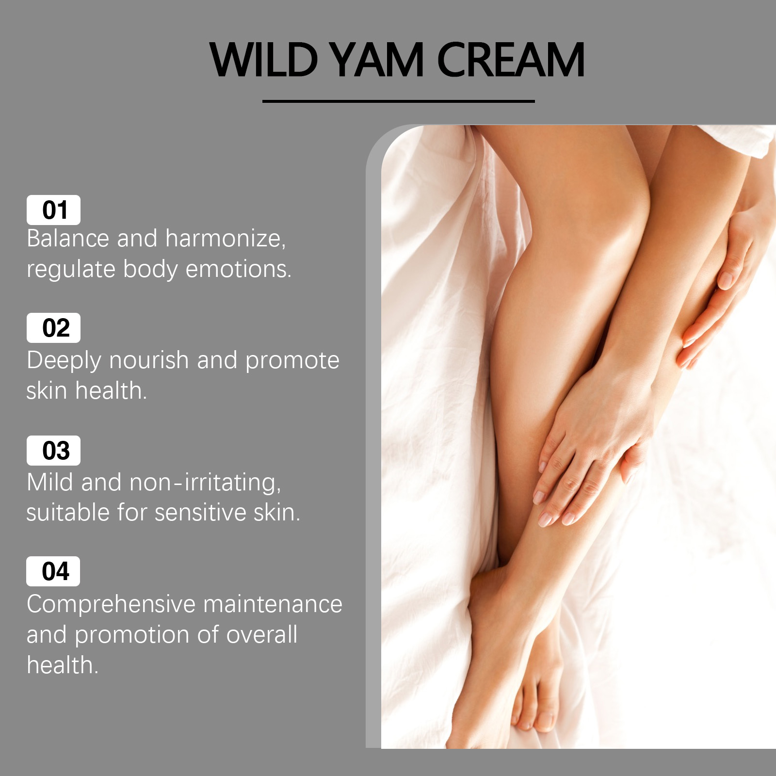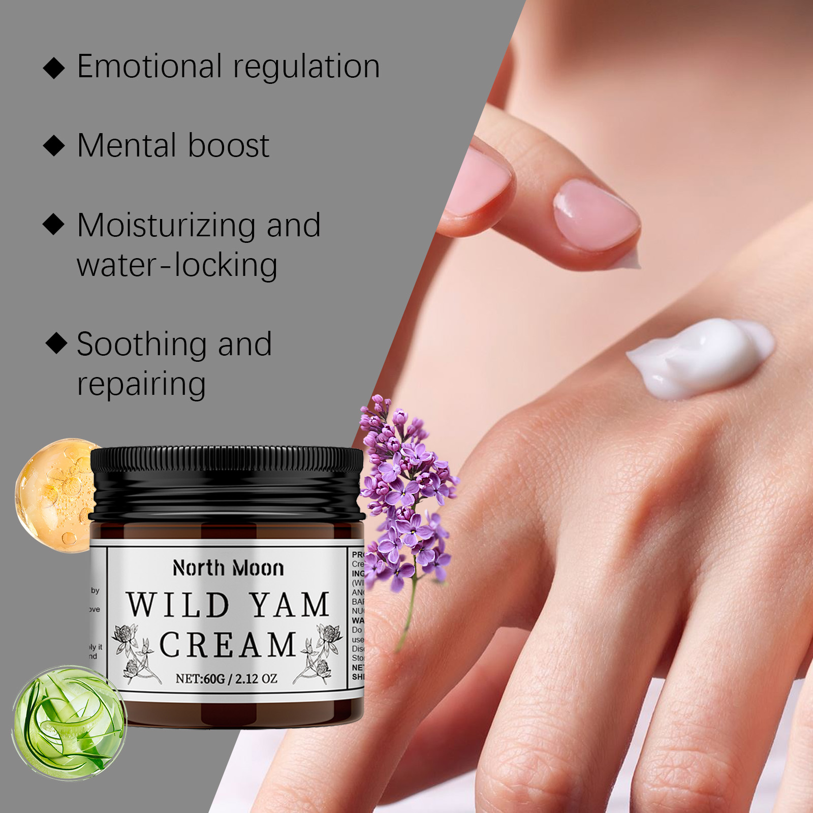 Our wild yam body cream contains wild yam extract, lavender extract, aloe vera leaf extract. It balances emotions and relieves tension and anxiety. Lift your spirits, energize you and help you deal with challenges. Its use is simple: 1. Clean and dry the skin; 2. Take a pea-sized amount of this product and evenly apply it to the inner thighs, upper arms, abdomen and other easily absorbed skin. 3. Gently massage until absorbed. Strong water lock, keep skin moist, away from dryness. A gentle sweep, easy to absorb, non-greasy, refreshing experience.
