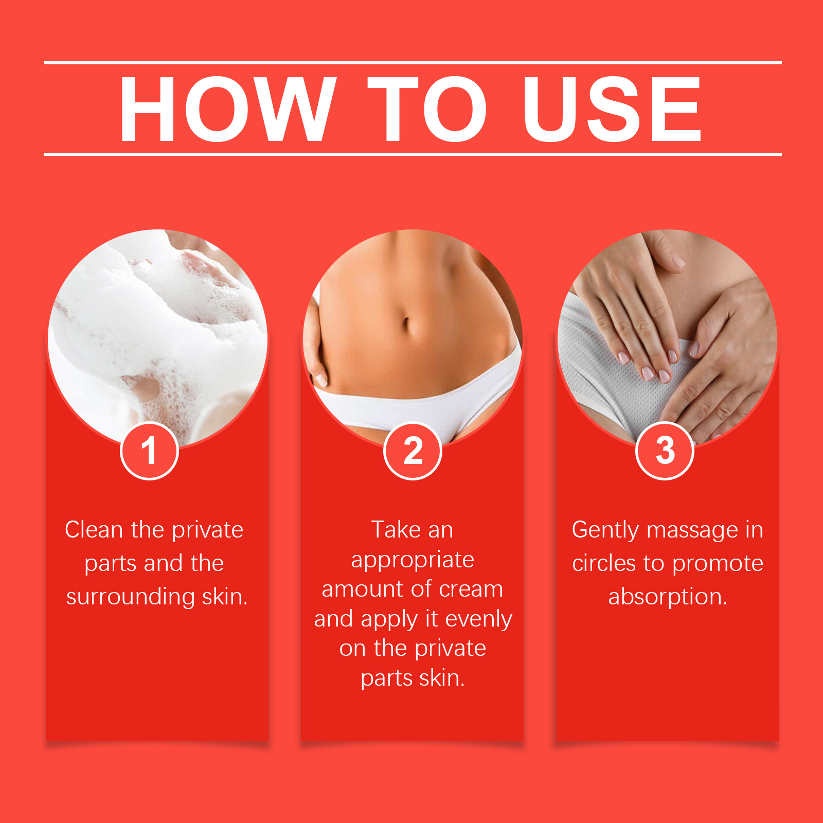 Our ladies' care cream contains olive oil, avocado oil and sea buckthorn oil. It can effectively moisturize and relieve dryness and discomfort. It helps soothe sensitive skin and reduce irritation. Its usage method is very simple: 1. Clean the private area and the surrounding skin. 2. Take an appropriate amount of the cream and apply it evenly to the private skin. 3. Gently massage in circular motions to promote absorption. And it can protect the private skin and keep it soft and delicate.