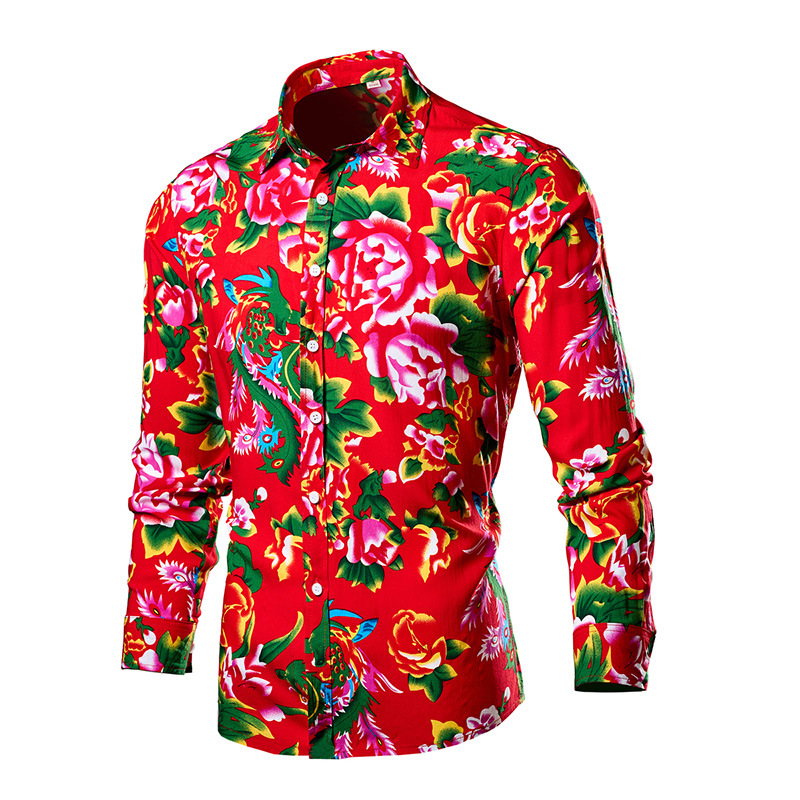 Northeast big flower long-sleeved shirt men's new color shirt