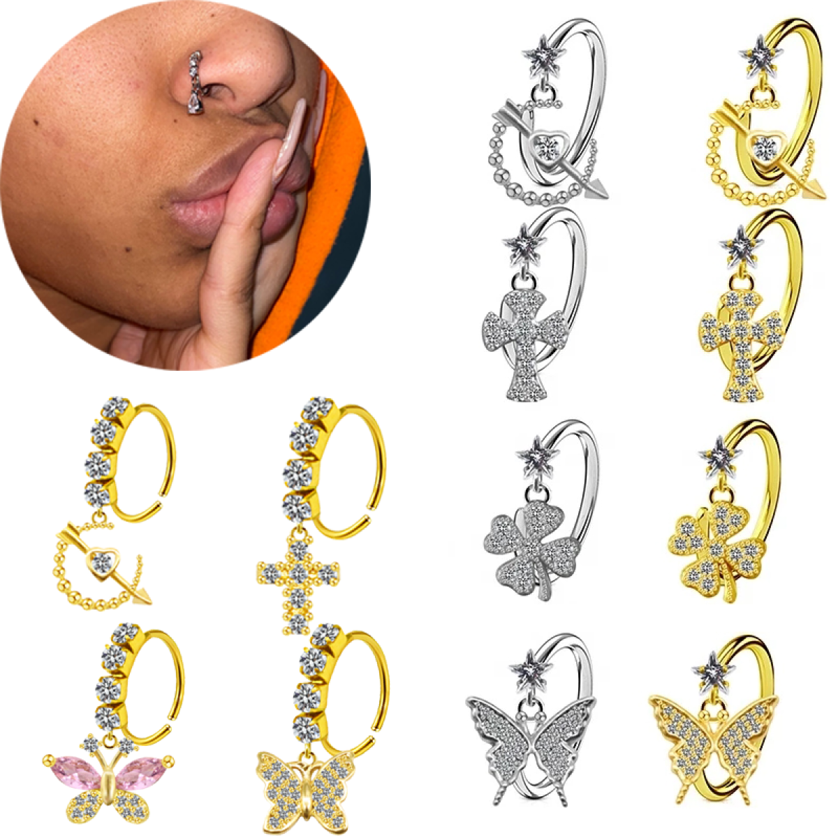 Style: nose ringColor: silver, goldMaterial: stainless steel