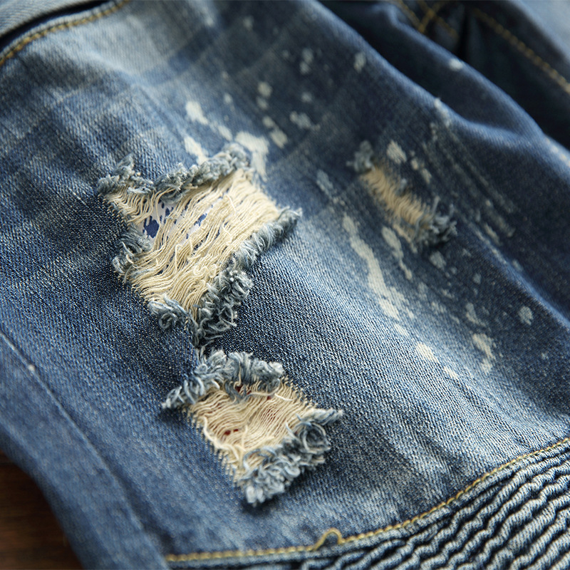 Special process: folds, cat whiskers, embroidery, fraying, washing