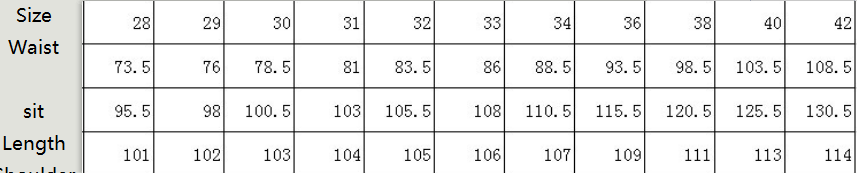 Sizes: 28, 29, 30, 31, 32, 33, 34, 36, 38, 40, 42