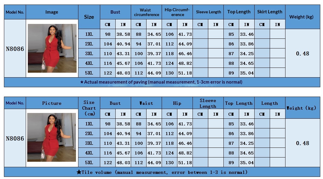 Sizes: 1XL, 2XL, 3XL, 4XL, 5XL