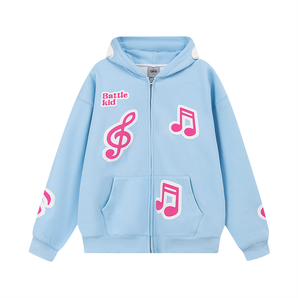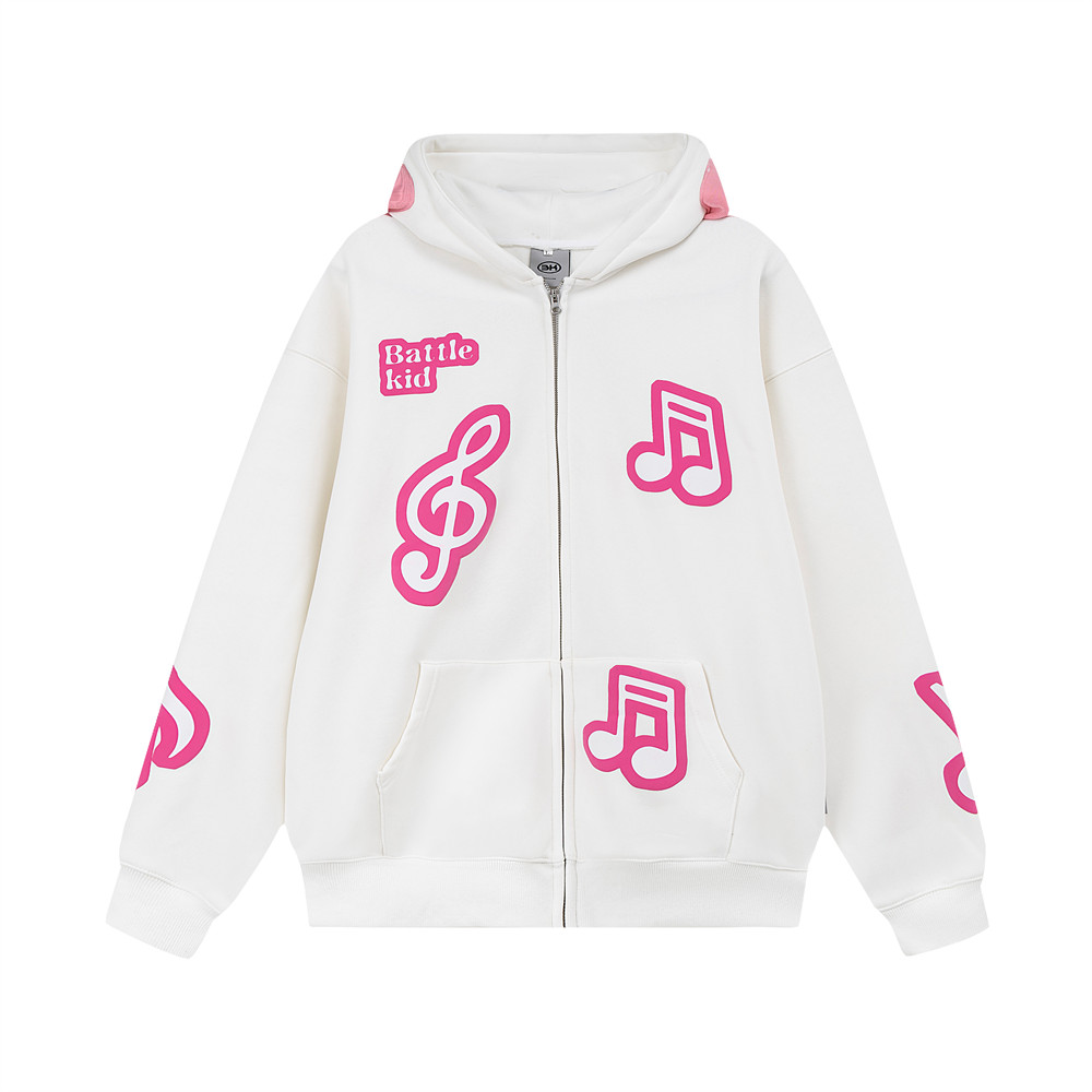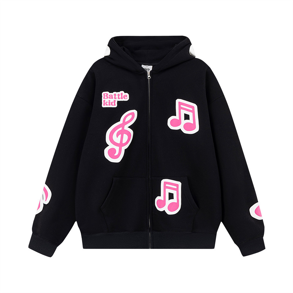 Note Printing Plus Velvet Hooded Sweater Cardigan