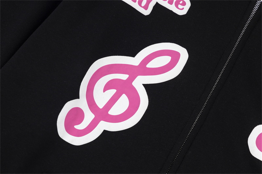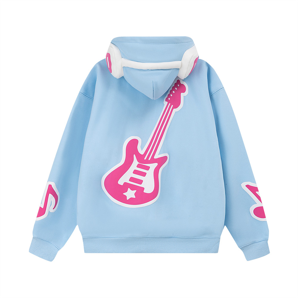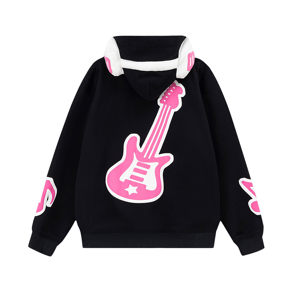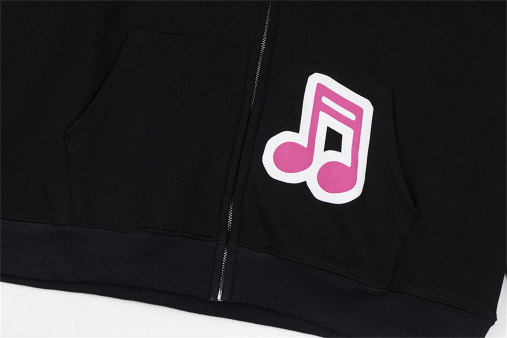 Note Printing Plus Velvet Hooded Sweater Cardigan
