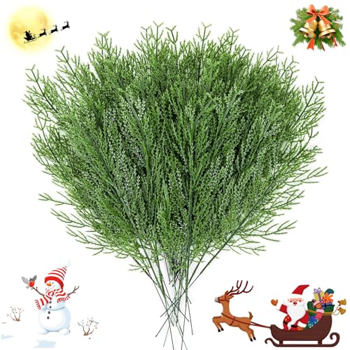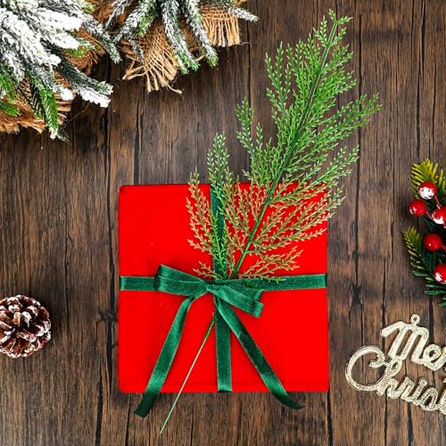 NOVWANG 60 Pieces Artificial Pine Branches, Artificial Cedar Stems And Artificial Snow Pine Branches For Christmas Decoration Christmas Picks For DIY Garland Craft Family Kitchen Holiday Decoration