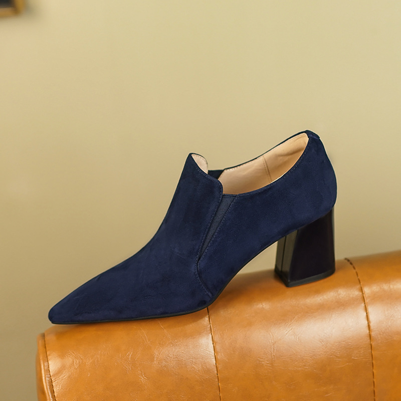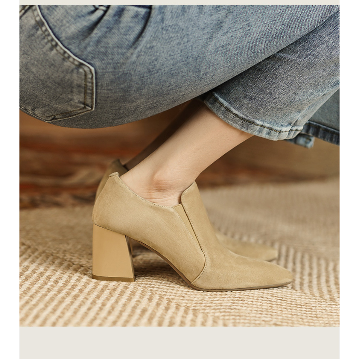 Nubuck Deep Mouth Sneakers Camel Pointed Toe Pumps Chunky Heel