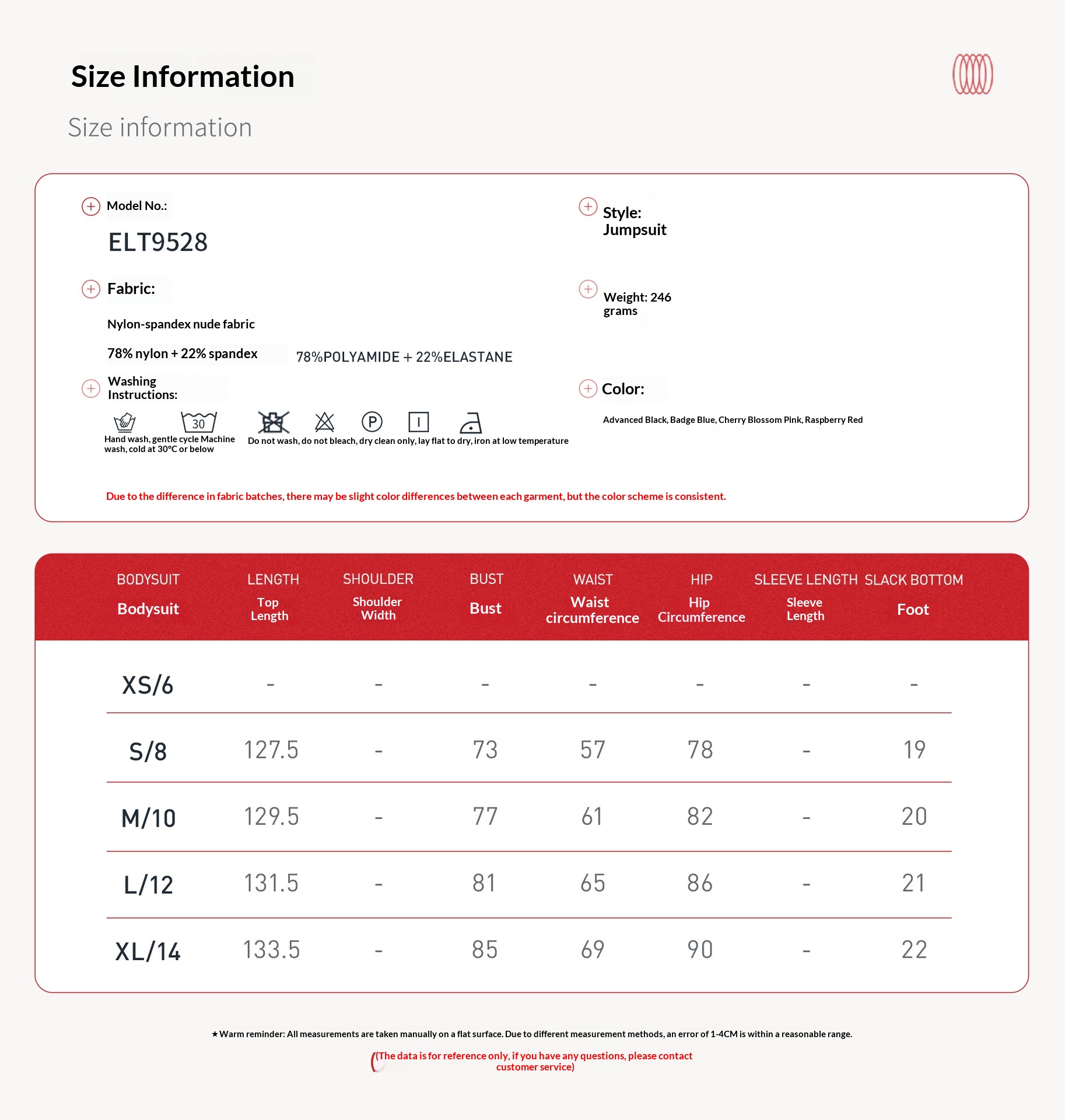 Material Composition: 78% nylon, 22% spandex