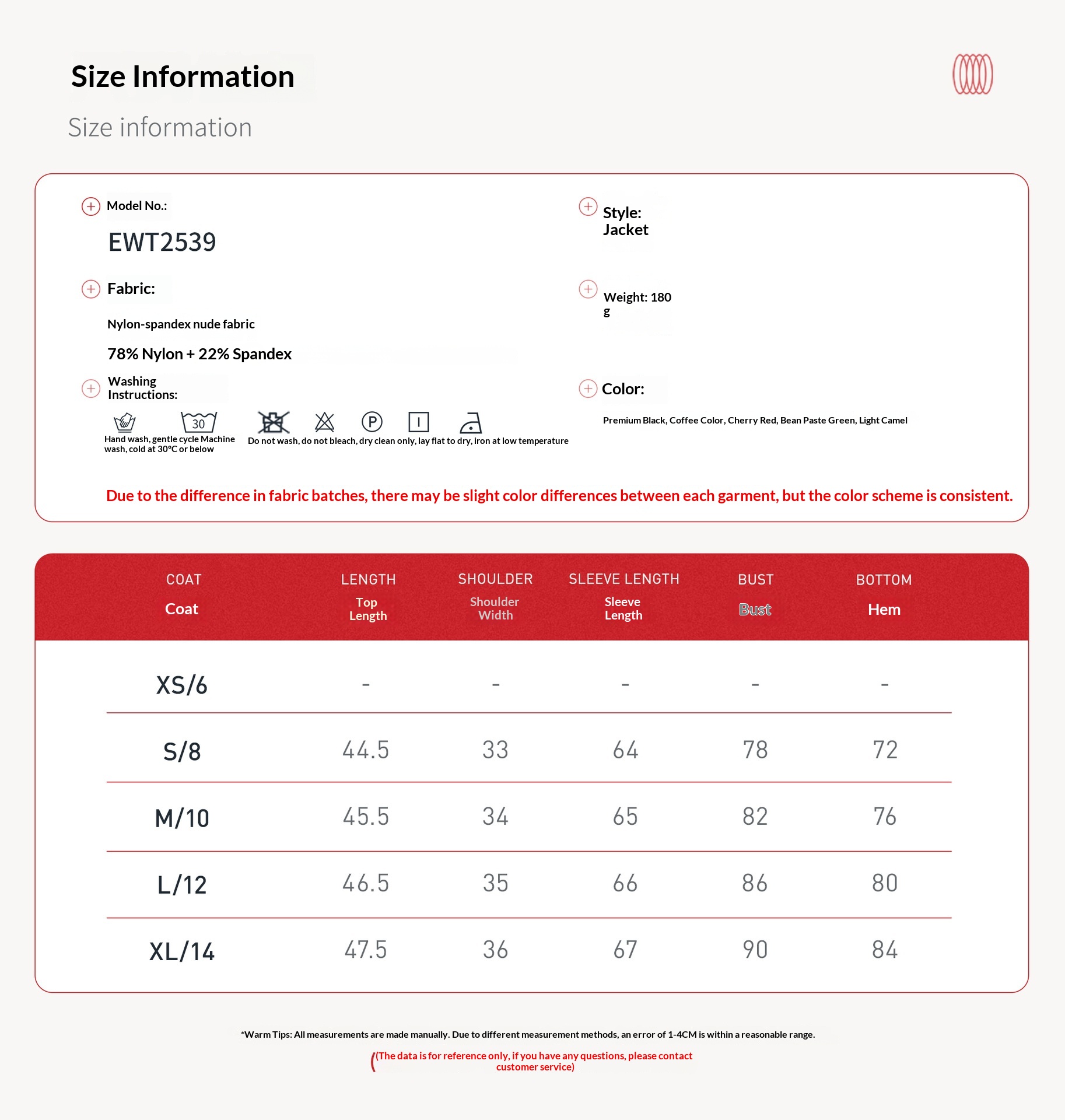 Colors: 2539 Jacket + 2030-1 Trousers — Elegant Black; 2539 Jacket + 2030-1 Trousers — Coffee Brown; 2539 Jacket + 2030-1 Trousers — Bean Paste Green; 2539 Jacket + 2030-1 Trousers — Cherry Red; 2539 Jacket + 2030-1 Trousers — Light Camel