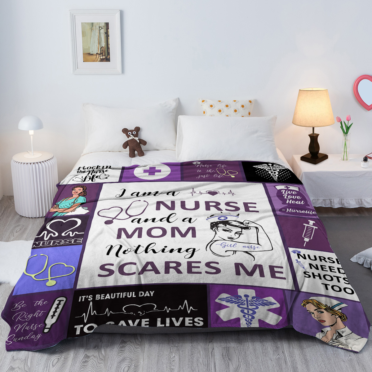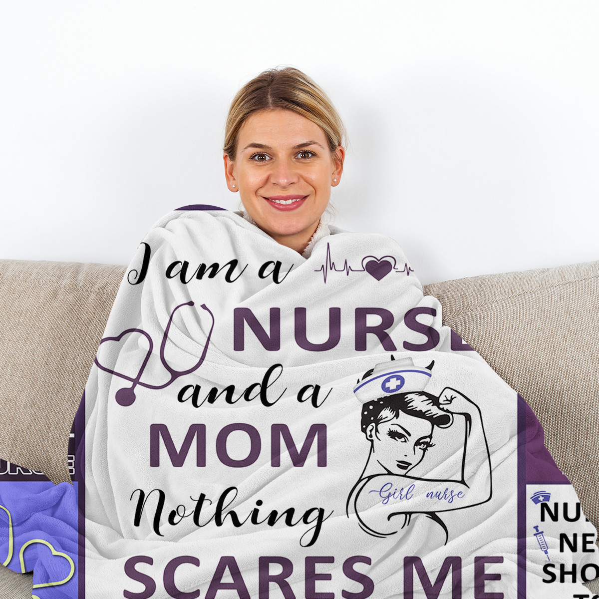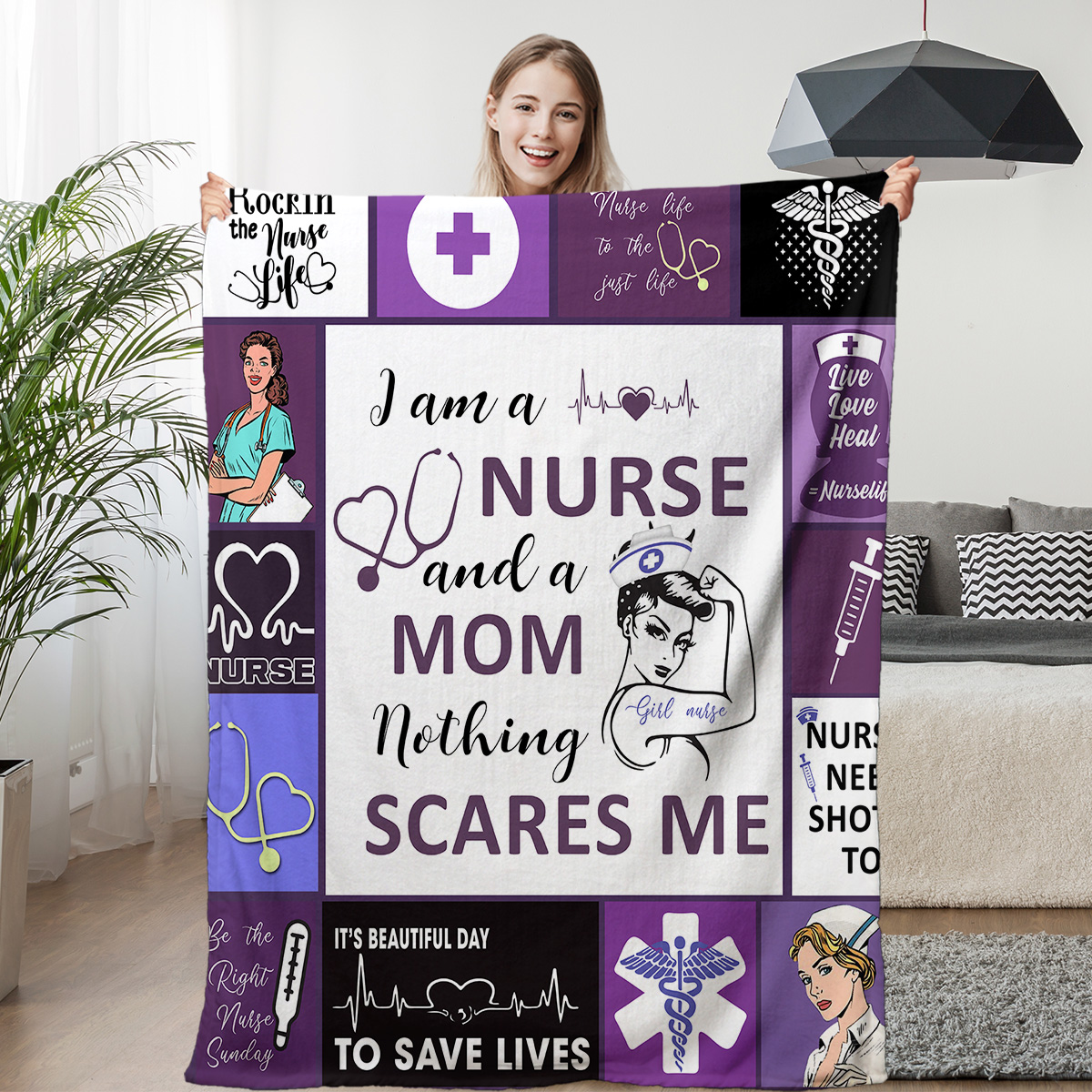 Nurse Mom Throw Blanket Nothing Scares Me Flannel Blanket For Women Funny Fleece Blanket