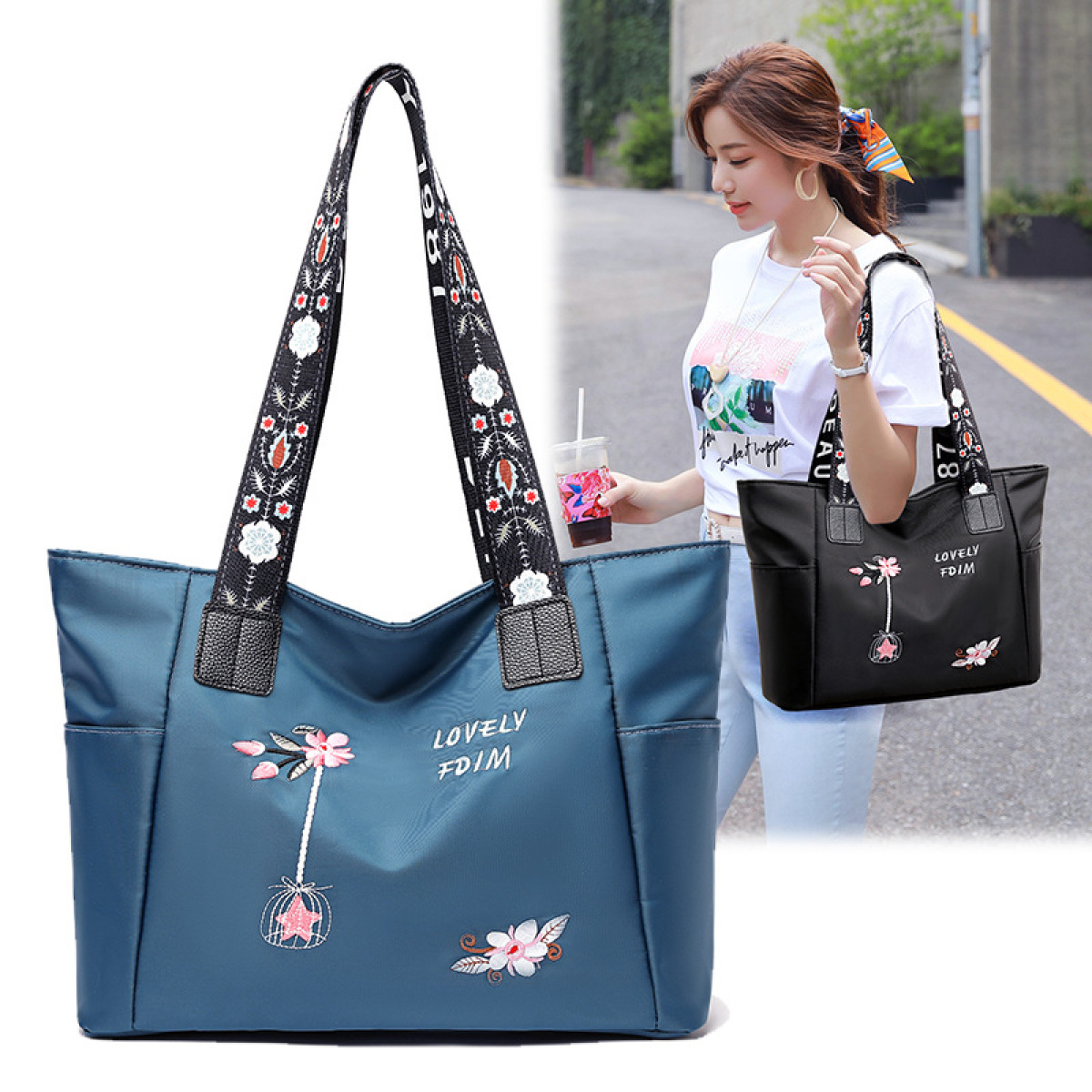 Color: black, sky blue, beige