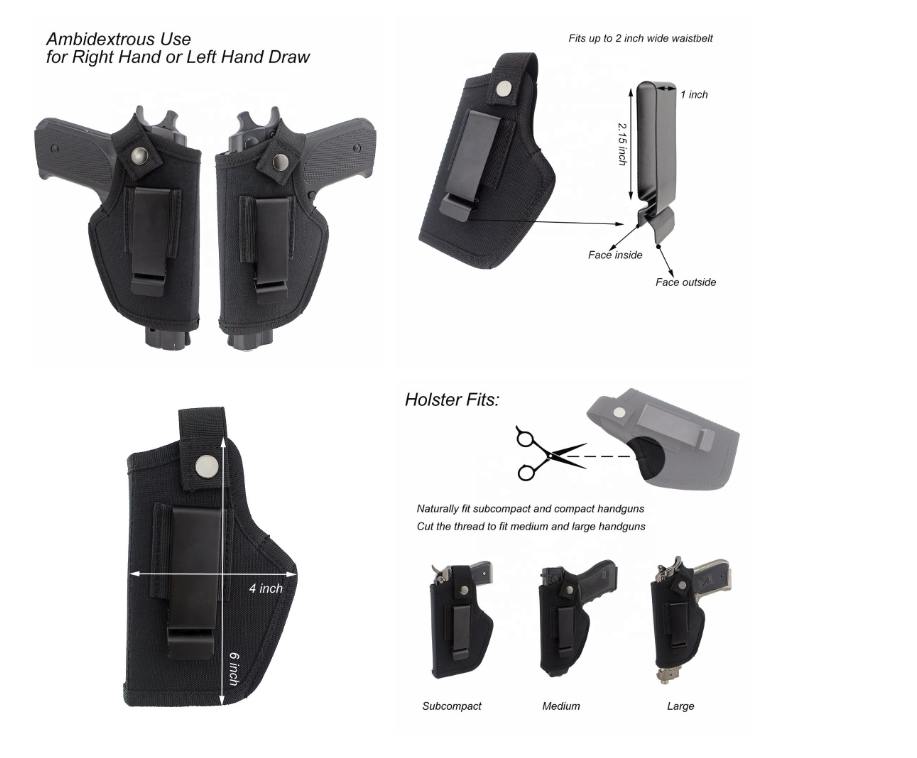 • It is designed to be worn inside or outside the waistband for concealed carry.