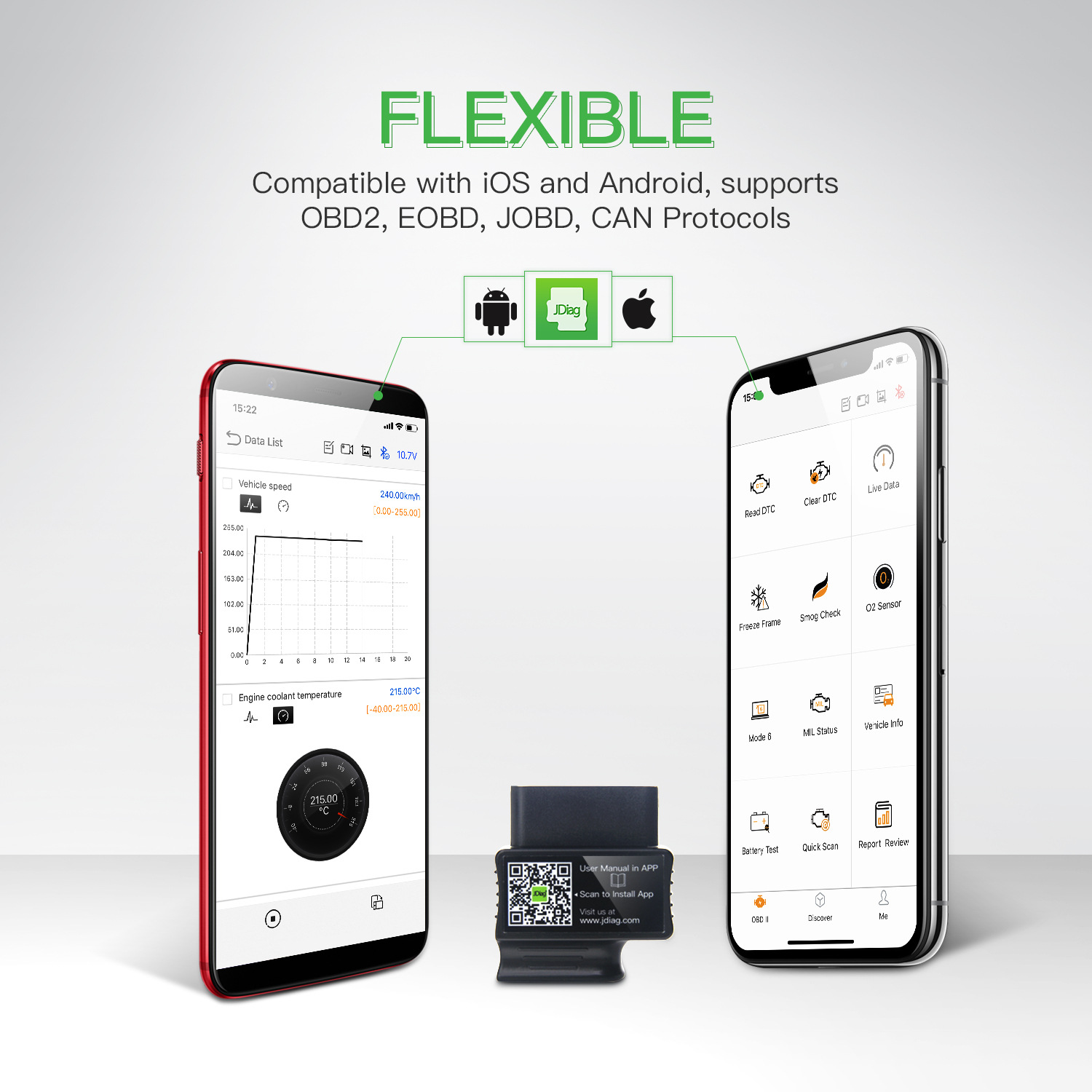Supports all OBD2 protocols including: