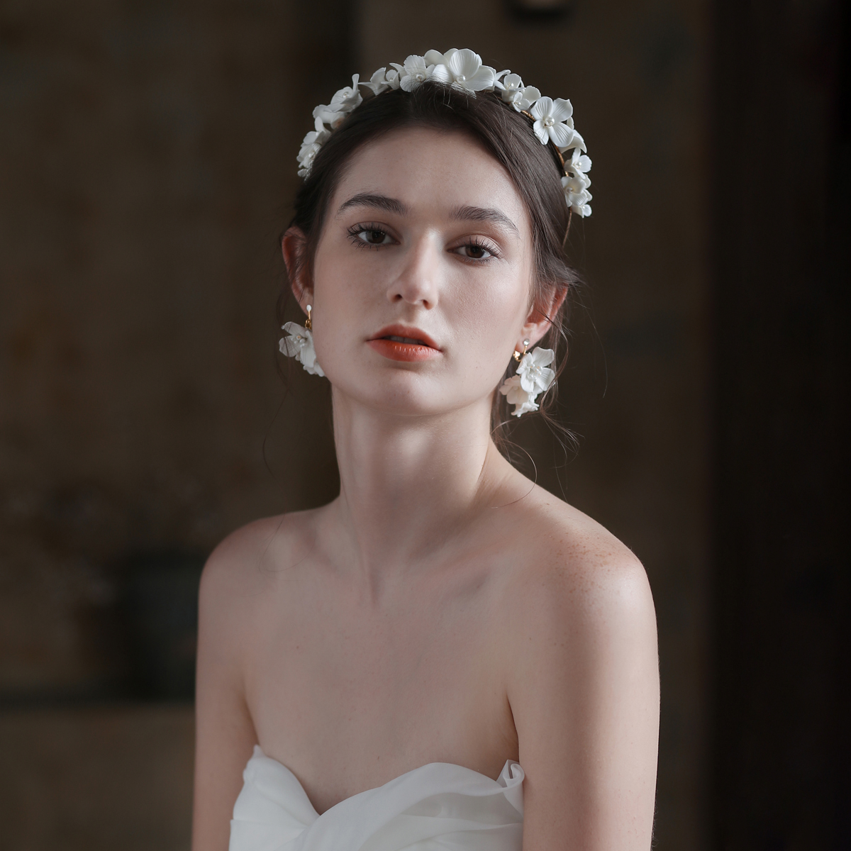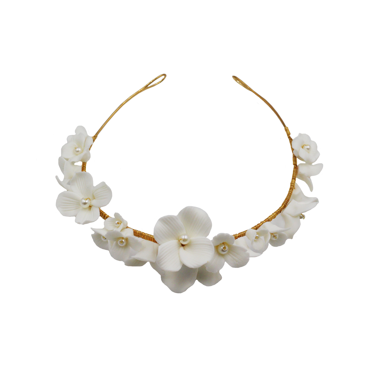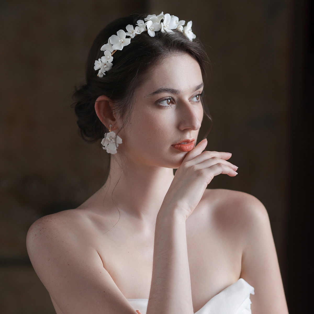 Color classification: white ear clip, white hair band, white suit